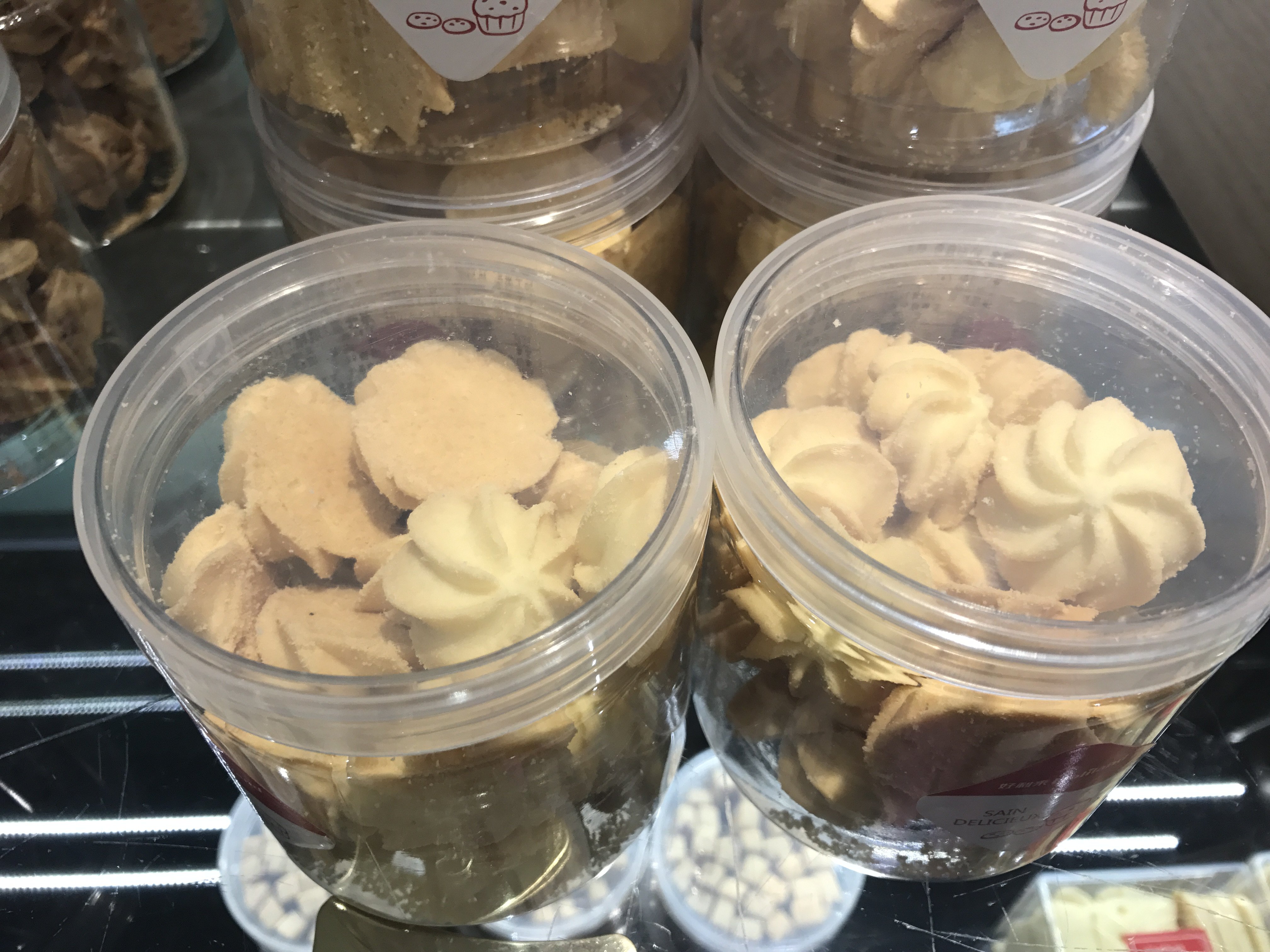 【食物品鉴】面包种类很丰富,看的出是早上新鲜出炉的,还透着一股烤箱中特有的香味和热气,同时还有源源不断的各式面包刚刚出炉上架,让人油然生出一股幸福感,靠近玻璃窗的位置摆放的是各式曲奇和饼干,小盒子看起来都很漂亮,饼干和曲奇的样子也非常诱人,花生甜心上面布满了花生碎,每一口咬下去都是酥酥脆脆的感觉。