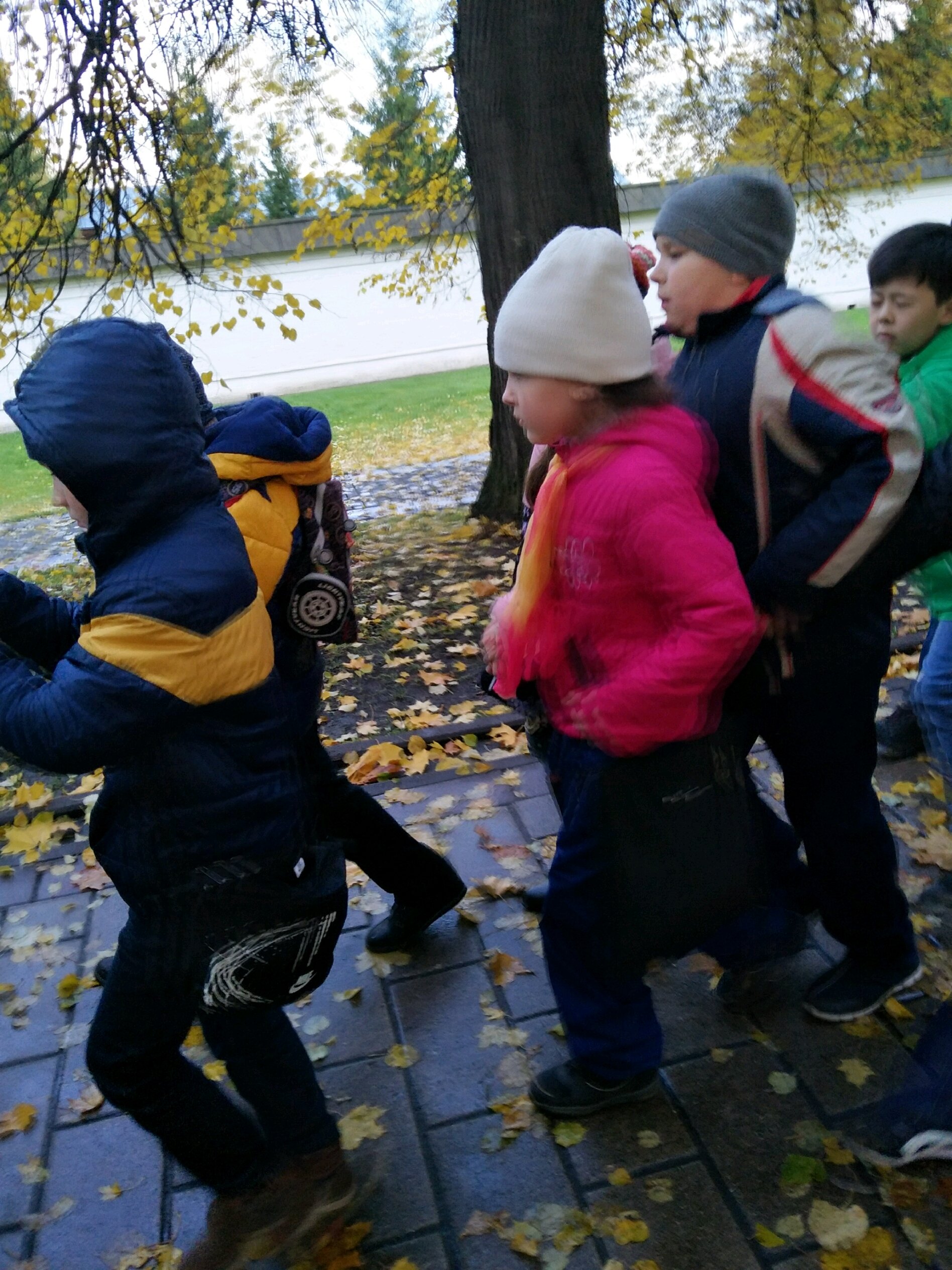 和老师一起秋游的俄罗斯小朋友