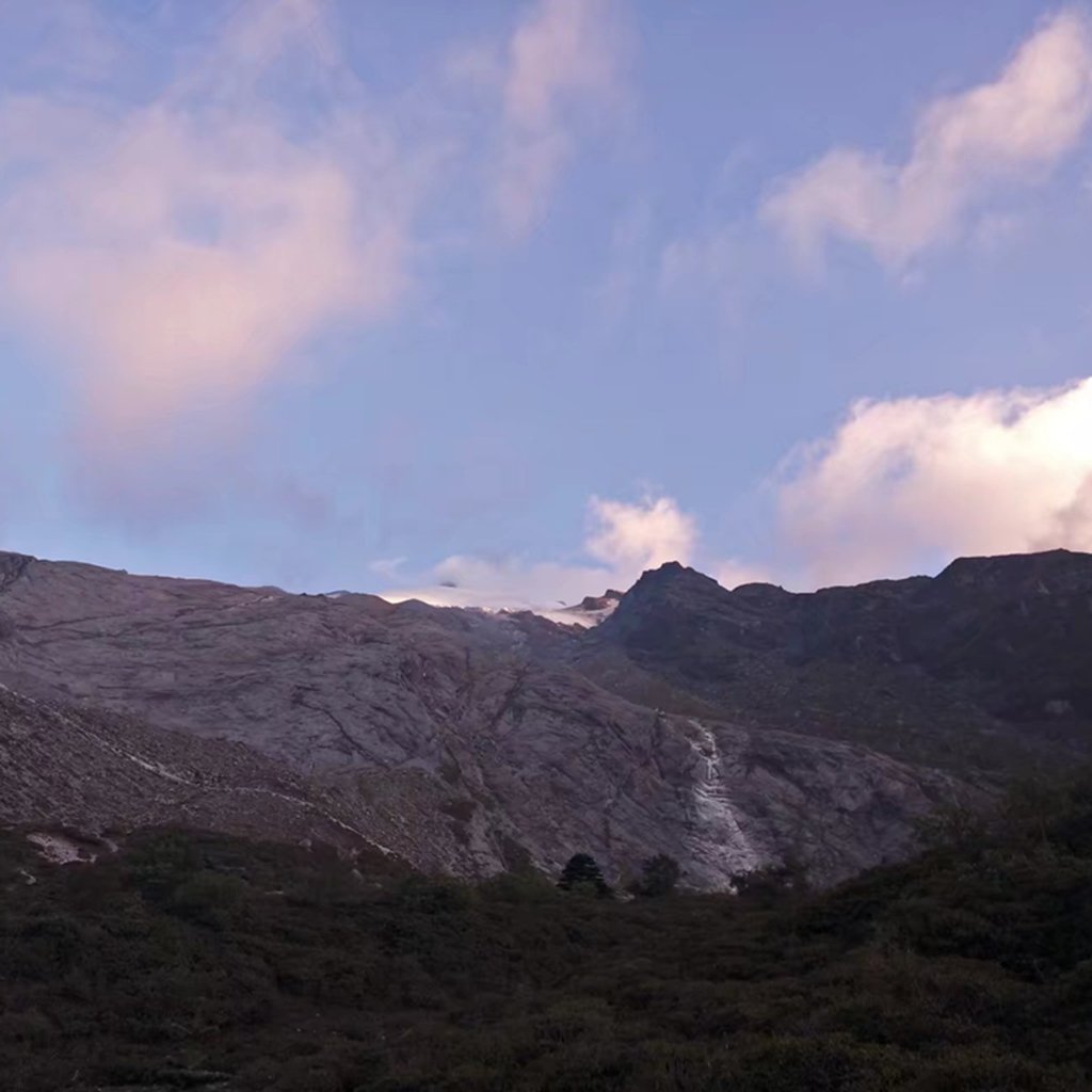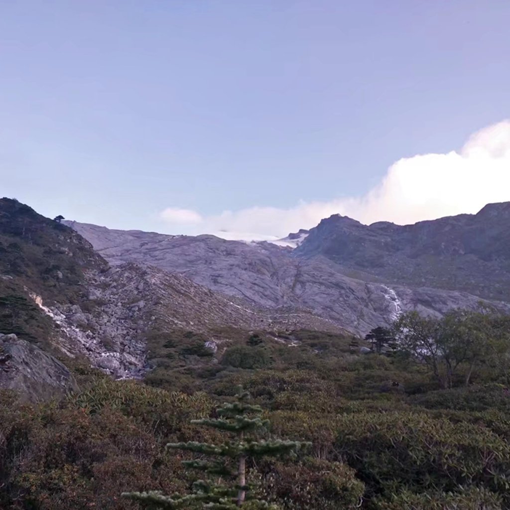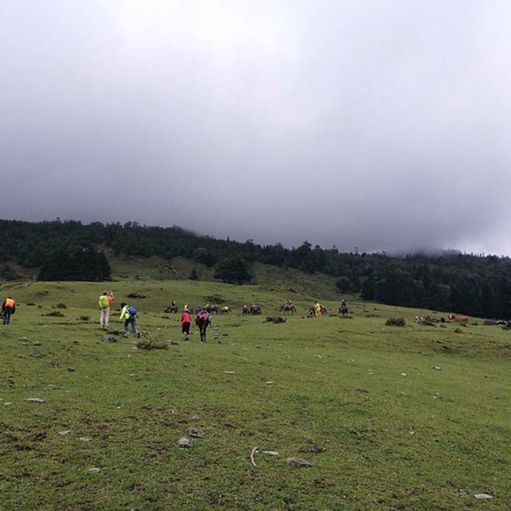 没有骑马,徒步上去,道路泥泞,加上坐车晚上没休息好,明显感觉很累。走了一半,背包丢给马驮,状态才稍微好些。路上遇到雄哥在附近林子里捡菌子,说是给我们加餐。一路走走停停,下午四点多到达大本营二站,走了差不多6个小时。上去问感觉怎么样,一个字,饿。