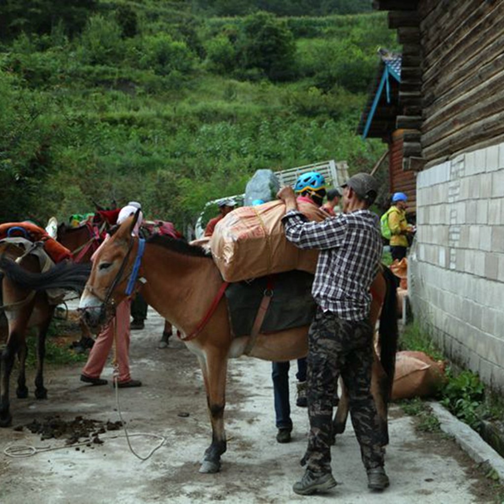 我们没有用骡子驮行李 都是自己徒步上去的