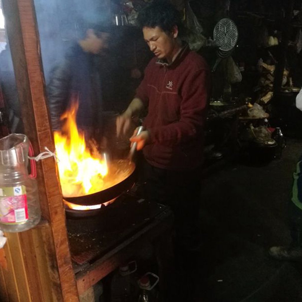 然后向导给我们烙粑粑,脆甜香,就着酥油茶,太安逸了。
