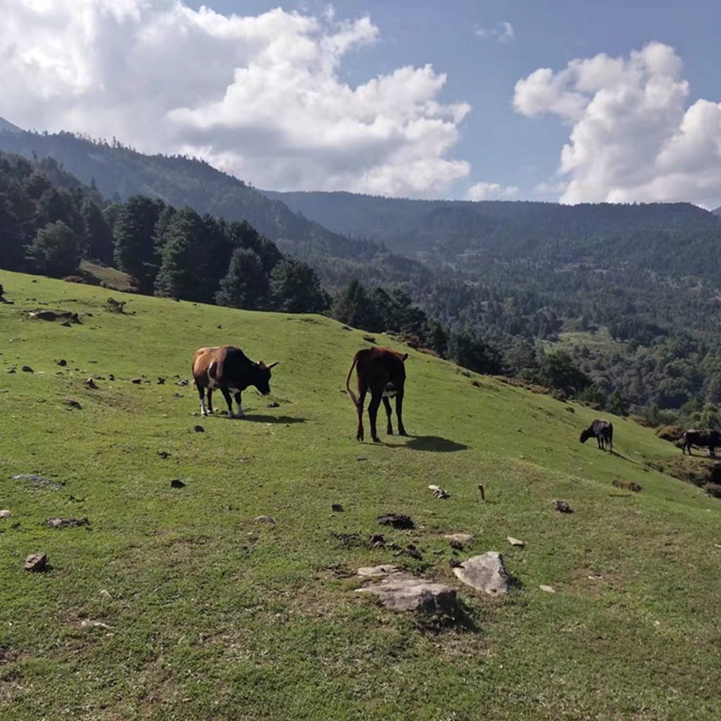 聊了会天,就休息了,晚上睡得挺好,比在四姑娘山大本营好多了。凌晨下起了暴雨,迷迷糊糊感觉牛铃铛在门前一直晃,和赶牛的吆喝声。然后又睡着了。第二天听说是雄哥怕牛铃铛一直在院子里叮当影响大家休息,起来赶牛赶了五六次。然而一夜的暴雨,牦牛也被淋怕了,就赖在屋檐下不走了。