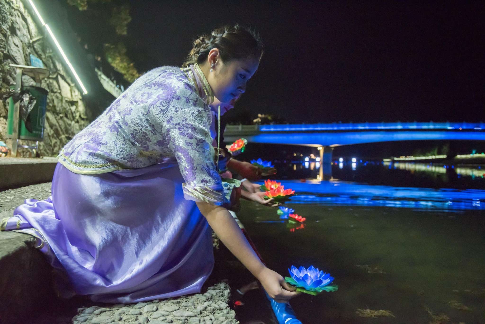 重没见过这样场面的河灯投放,真心觉得美的让人窒息,