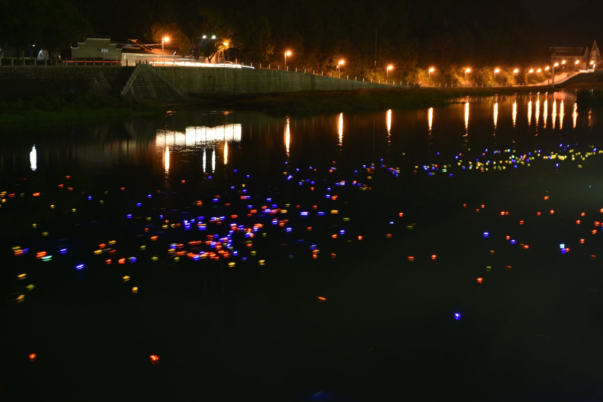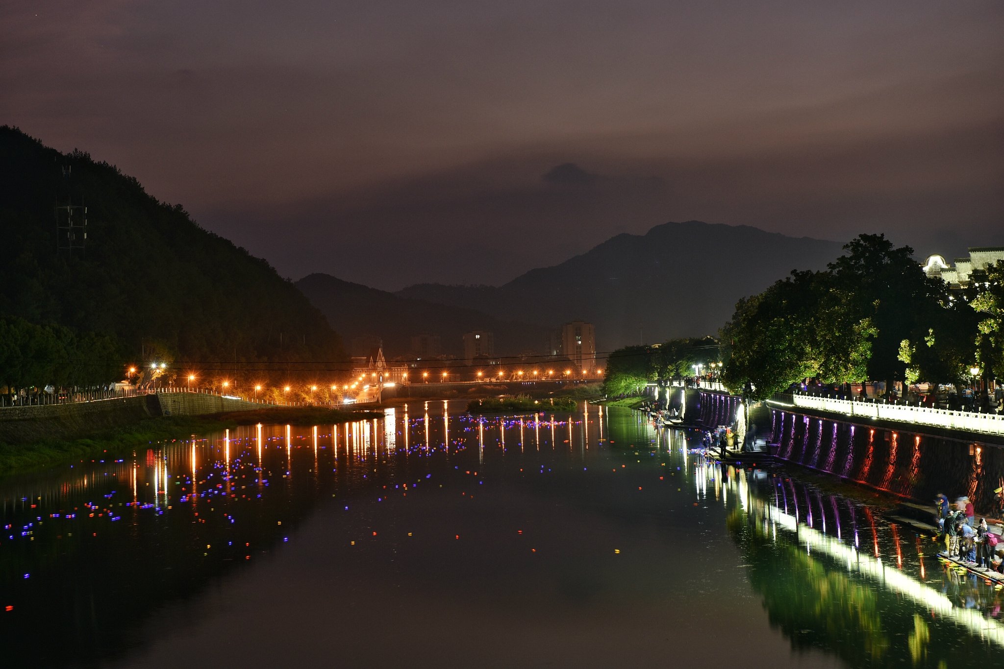现场有穿着民国风服装的妹子在投放河灯,个人觉得非常应景应情,在溪口这个满城溢着民国元素的小镇,这样的景象应该是独有的,也是最贴切最该拥有的