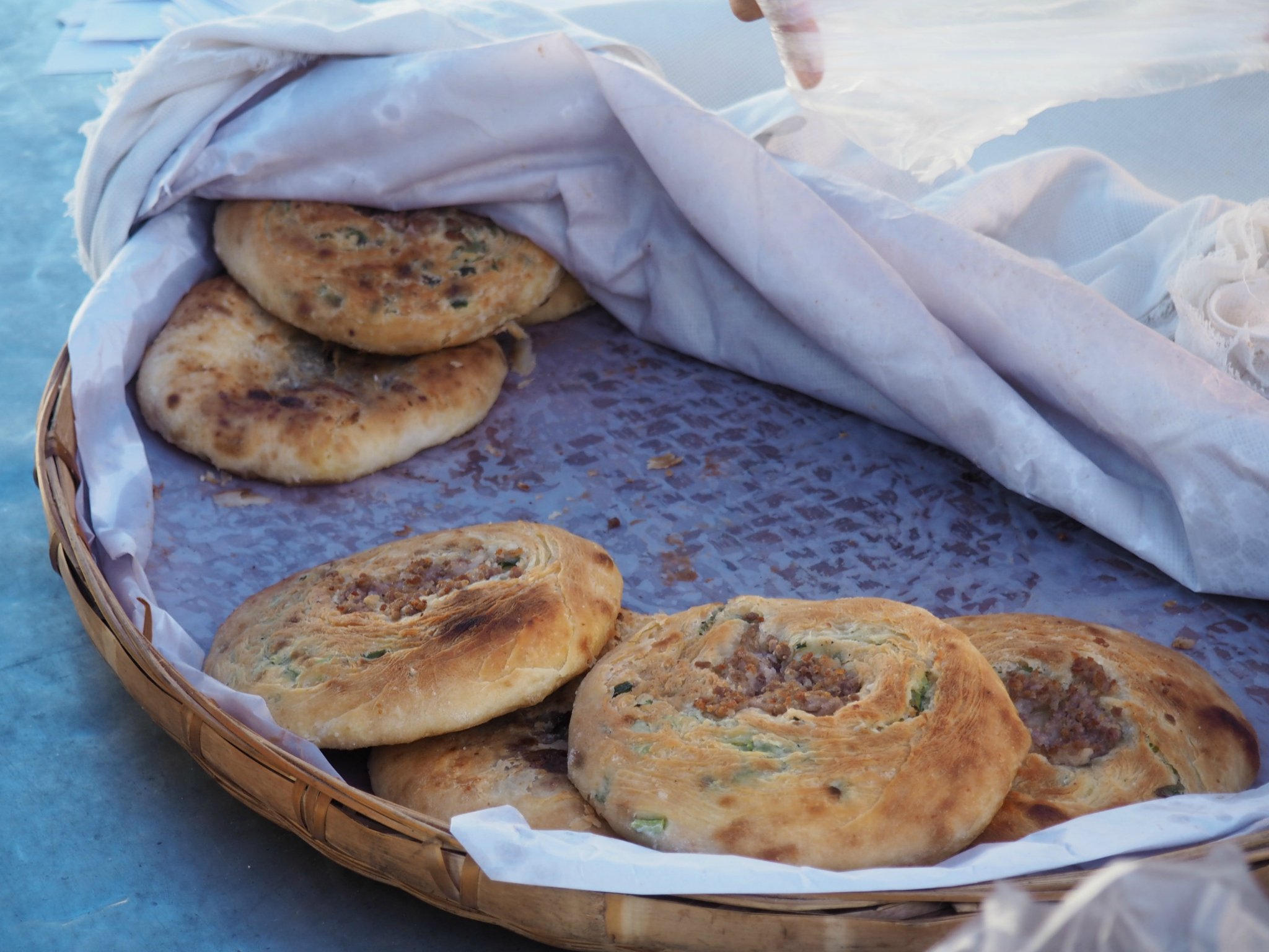喜洲粑粑,大理特色,有咸甜两种。冬天的清晨吃上一个刚烤出来的喜洲粑粑简直不能太美好,玫瑰糖的香味和着清凉的阳光让空气仿佛也镀上一层蜜。喜洲粑粑又以喜洲镇的最为出名,据说很多当地人都会跑到喜洲镇只为买到个喜洲粑粑。