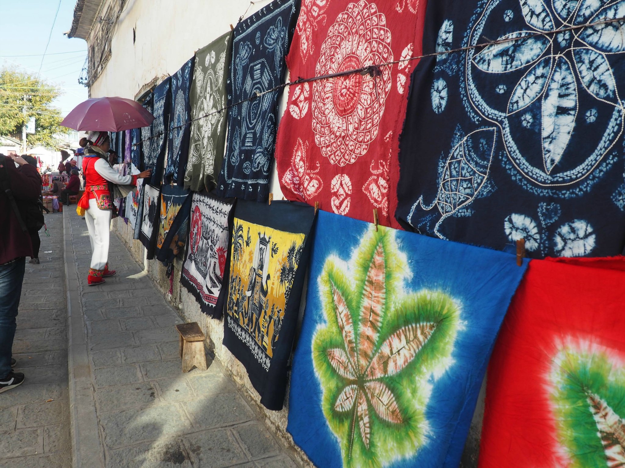 在喜洲镇中前往严家大院路途上蜡染。