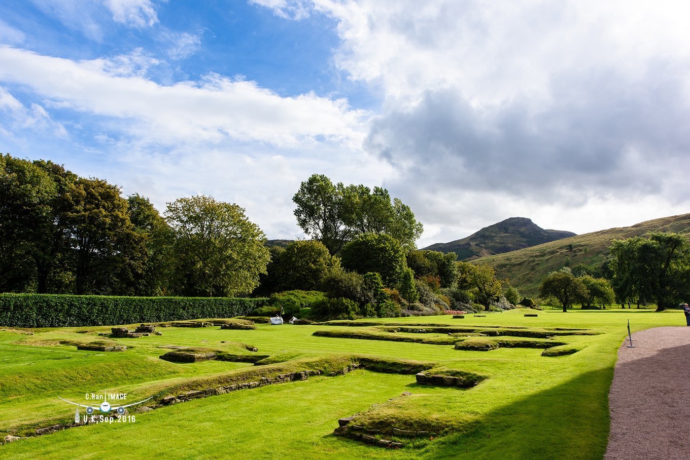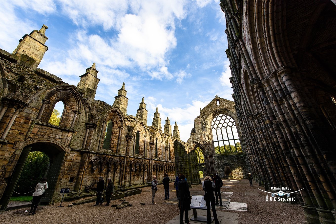 现在宫殿是英国女王在苏格兰的皇室住址,所以又有这位老太太的服装展示,这位老太太行不行啊。要说这个宫殿比起爱丁堡城堡要有的看,但是室内是不许拍照的,所以只能饱饱眼福。在宫殿的花园中有一片教堂废墟,带感挺震撼的。