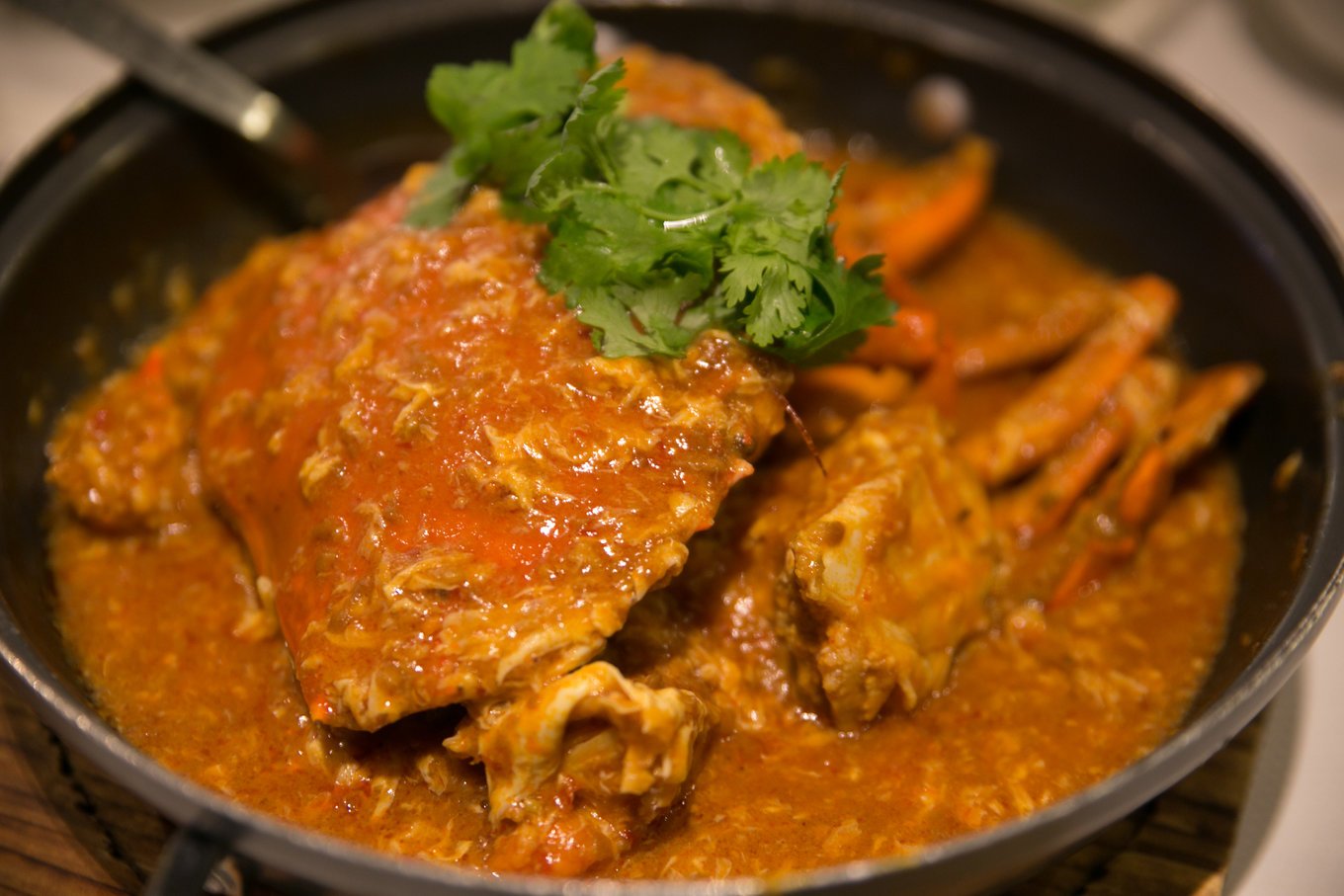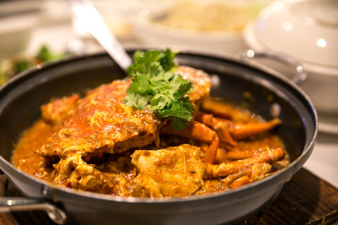 说下这家饭店吧,我们提到辣椒蟹,就会想起珍宝楼。但是它的辣椒蟹有多好吃了?仁者见仁智者见智。它的做法是取用新鲜的大蟹,爆炒后交上酱汁,辣味徘徊在味蕾,蛋液在蟹壳上略有甜味。