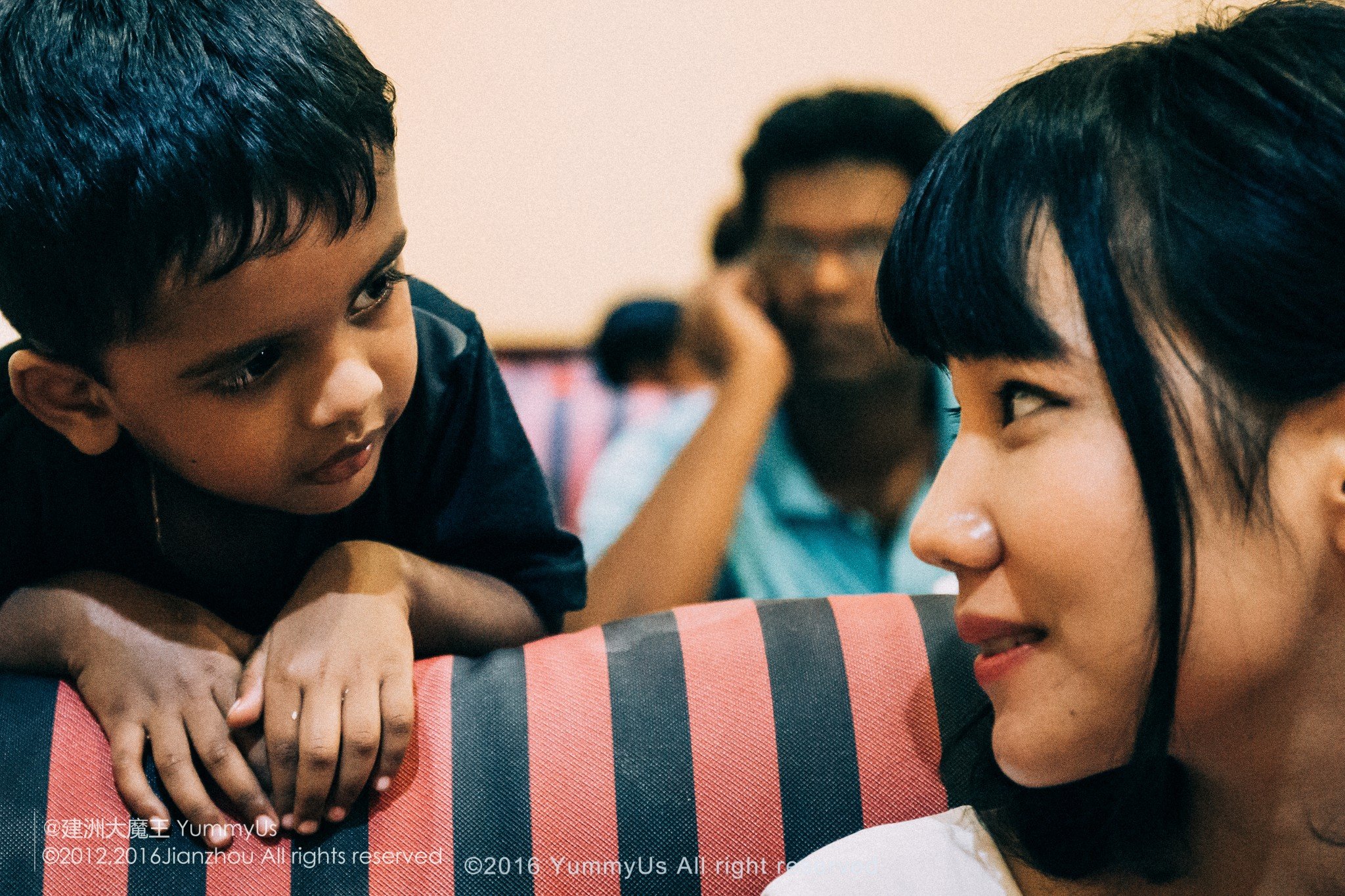 ↑我们旁边坐着的是一家三口,小家伙可能是吃饱了,探头探脑的四处玩耍。忽然看到美丽的大姐姐穿着莎丽,一下子被她的美貌所吸引。然后就出现了以上这张照骗!