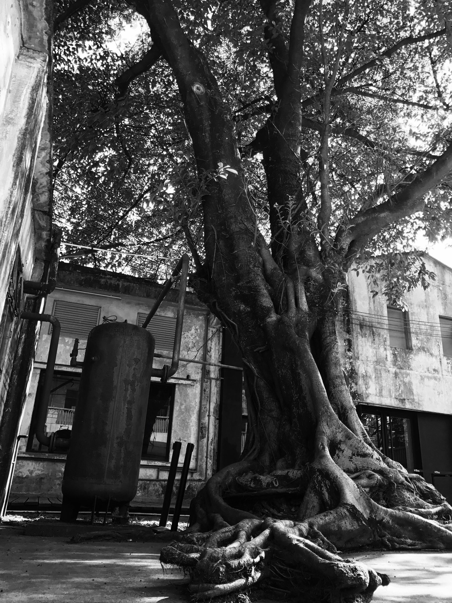 沙面发呆坐到快中午了,决定挪动脚步,坐地铁到员村站B出口下,看看期待的红砖厂创意园。里面游客不少,都是拿到📷,📱,各种拍照,褪色的红砖墙,布满铁锈的旧机器,爬满院落的树藤,一切都很适合摆拍,就怀旧风格拍出的照片很有韵味。