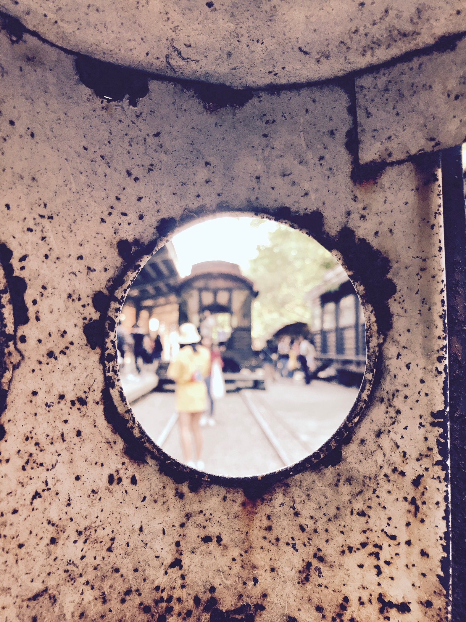 看到眼前的景色忍不住用黑白色记录下来。通过一方小孔拍一条废旧的铁路线