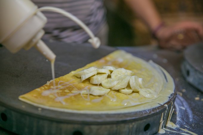 又到了重点推荐:香蕉可丽饼,香蕉甜美,配上美乃滋,和着可丽饼是一口口停不下来。