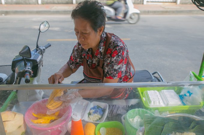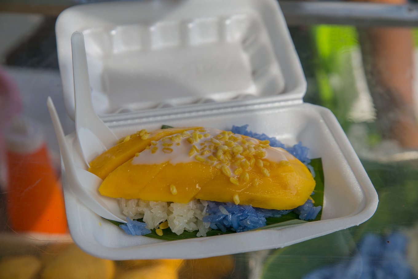 芒果糯米饭在清迈的大街小巷到处都是,摊贩的价格是50泰铢,环境好的店家也有卖150泰铢,看个人喜好吧。