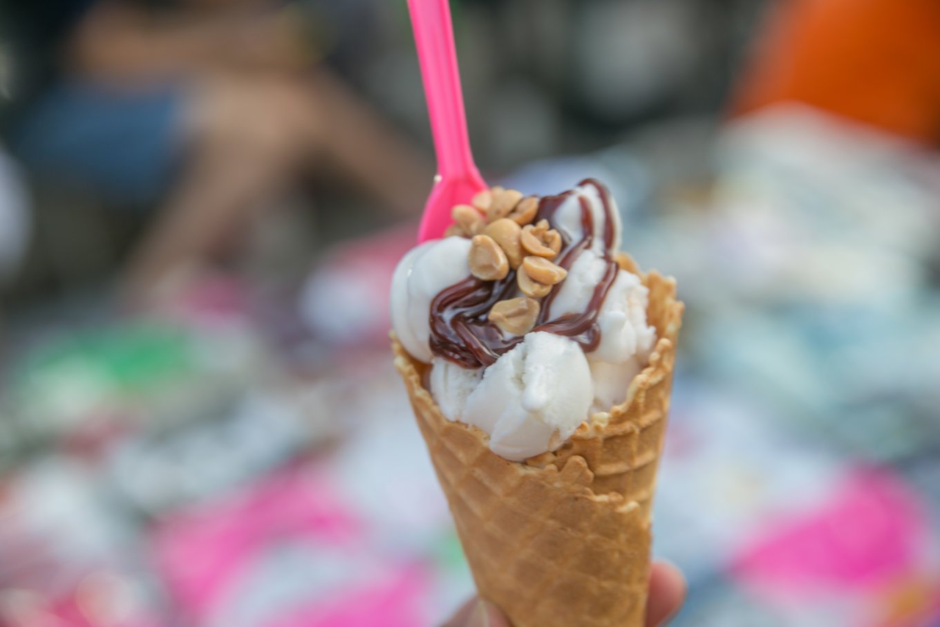 各个味道都能来一发的综合冰淇淋在夜市也是人气产品,一群老外小姑娘叽叽喳喳的排队吵着吃。