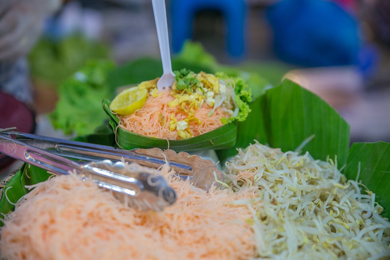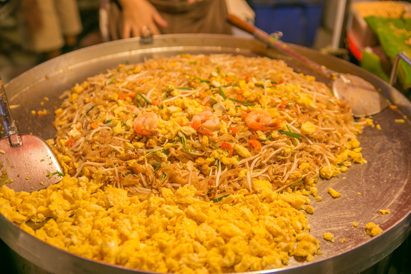 夜市上有各种泰式炒河粉,金边,海鲜炒饭,主食不用愁。