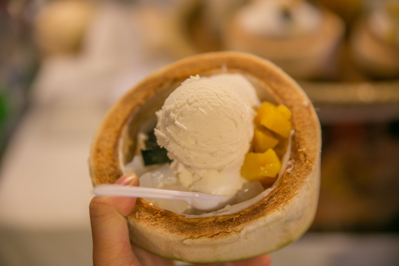 非常非常非常好吃的椰子冰淇淋!一口芒果一口椰香,口感甜甜糯糯还能饱腹。看到千万不要犹豫,去买了吃啊