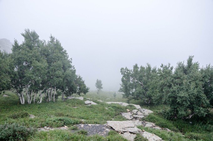我刚到的时候,天空就飘来一阵雾,虽然站在高处,也望不到远方。