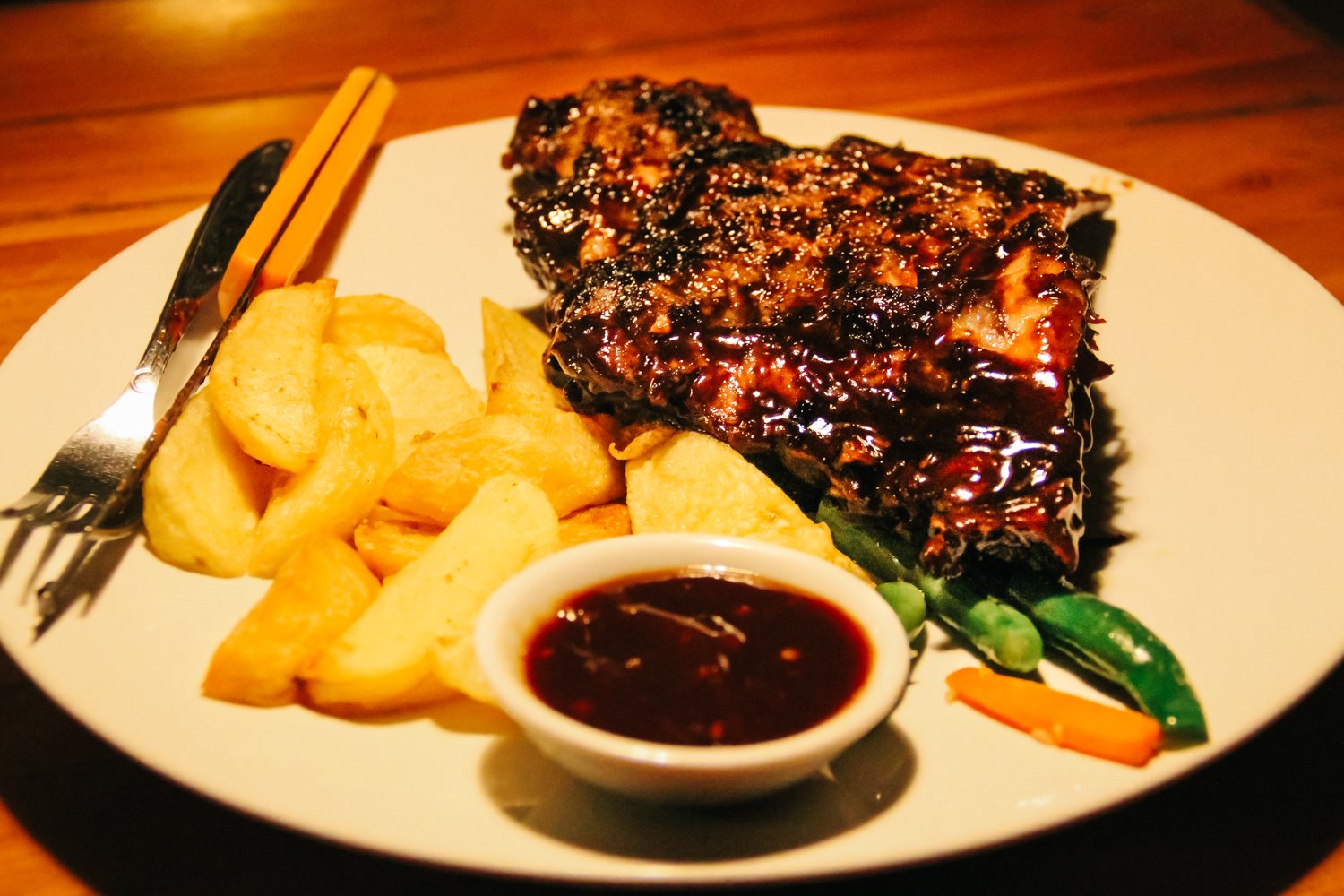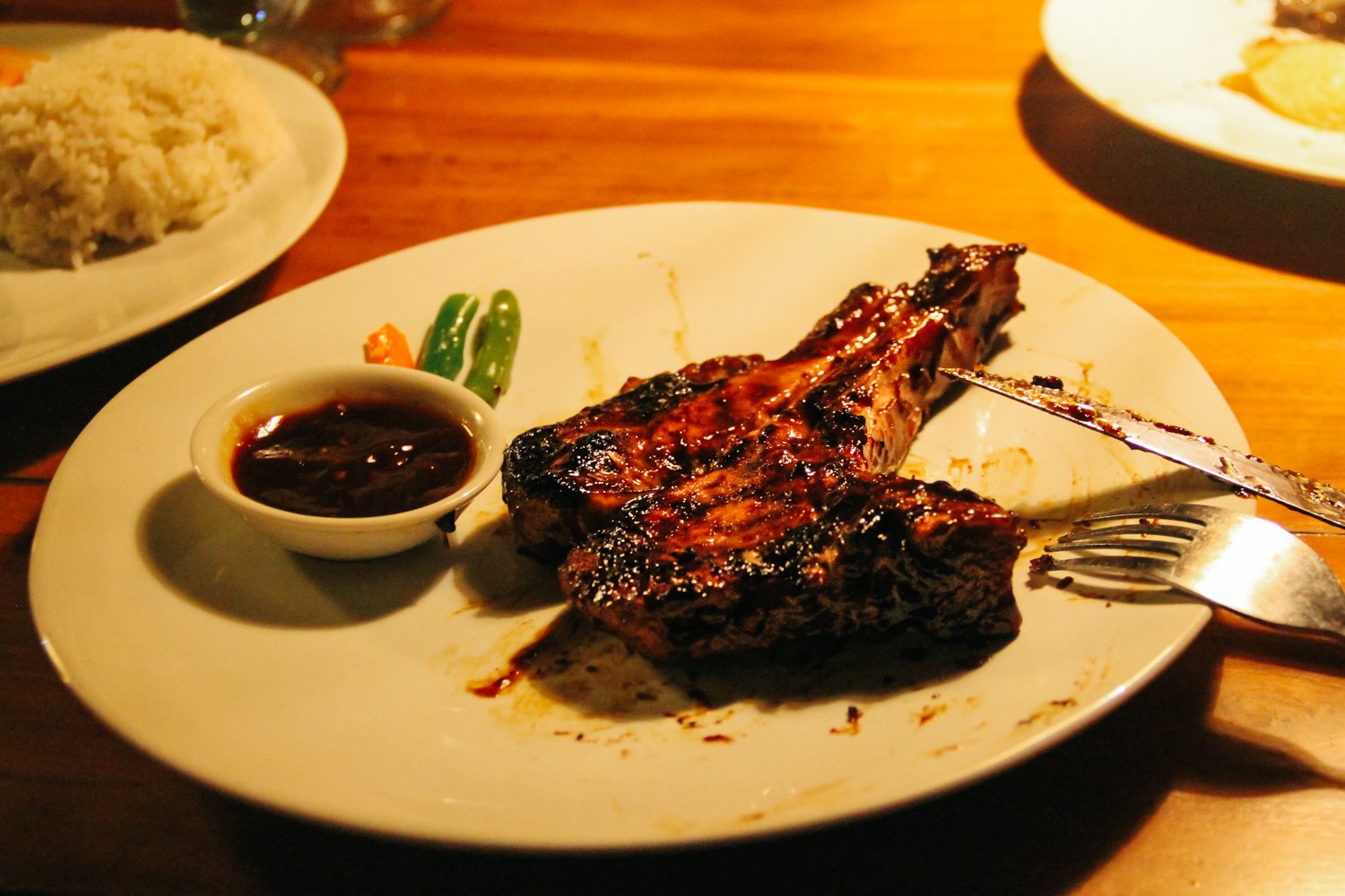 餐厅位于乌布,但不在乌布中心区域,所以店里的游客不多,基本都是本地人。从乌布市场还要再开摩托车约15分钟才能到。到门口就可以看到炉子上烤着大块大块的猪排,而一份带有6根肋骨的大排只要人民币20元!!最重要的是它真的好吃!肋排外刷了烧烤酱,肉里带着肉汁,吃一口还有满口胶原蛋白的感觉,除了肋排,热狗、沙嗲、牛排也都推荐,食材新鲜配上独家烧烤酱(微辣),回味无穷,肉食者绝对不能错过。配上一杯柠檬薄荷水,开胃解腻。