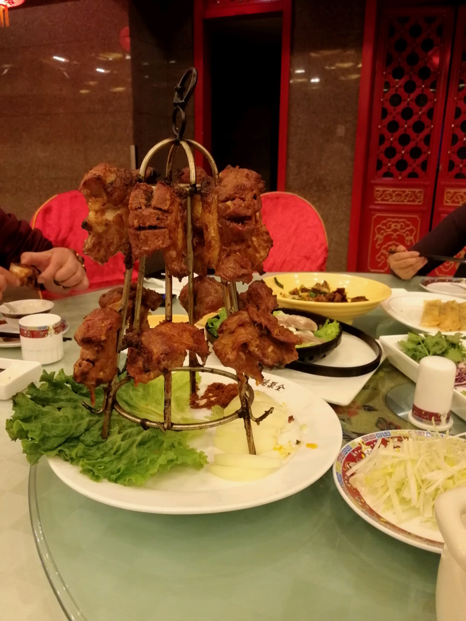 下午去了玉器店,二个小时等待,晚餐去了天下第一楼全聚德吃烤鸭,架子烤肉,羊肉…