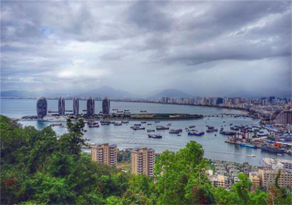 山顶公园的观海亭是个非常出色的观景平台,站在观海亭看着山下的风景,目光所到之处,就是三亚的这片...
