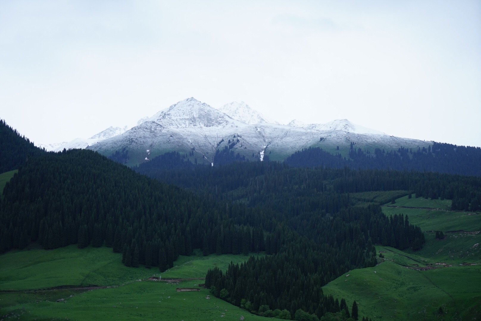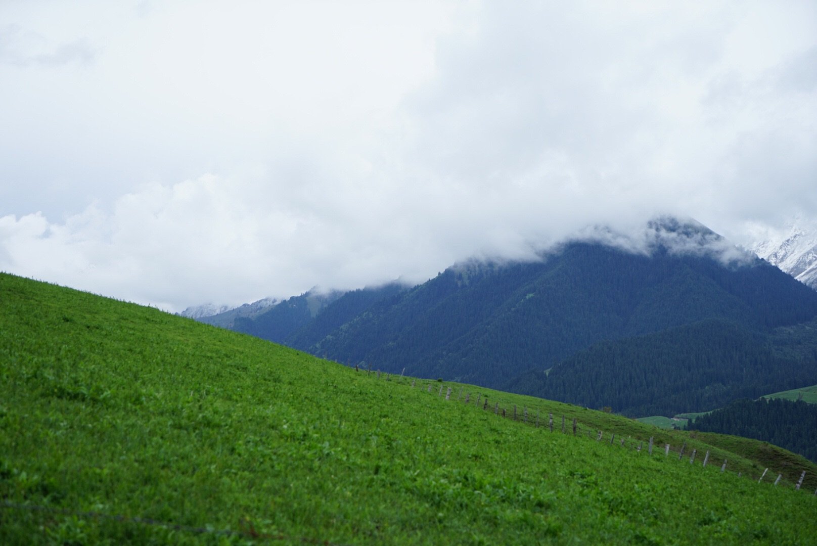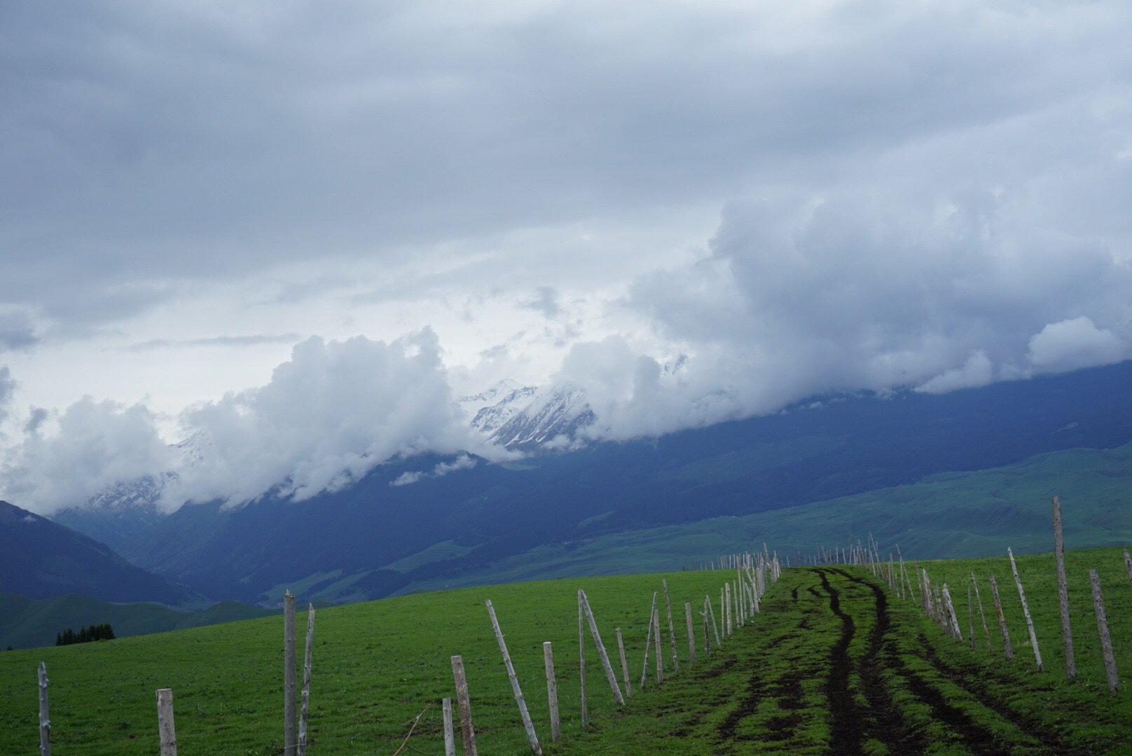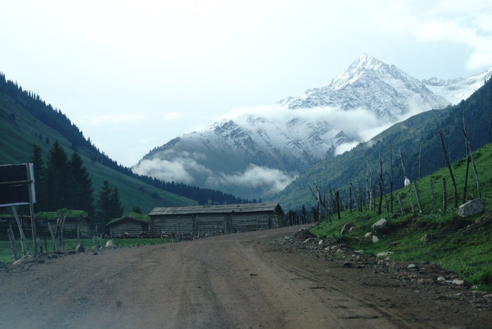 琼库什台比较冷门,司机找不到路,一路走错一路回头,在尘土飞扬的小道上和无数当地人插肩而过后,终于折腾到了村里。迎接我们的却是倾盆大雨,住宿也很稀缺,大部分已经被订满了。我冒着大雨,穿着阔脚裤,大步向前寻觅落脚之地,最后住了一间类似炕的通铺,然后我们就躺着一直围炉夜话到入睡,因为雨一直下,没有晚霞,没有星空,甚至没有好好看一眼它的全景。