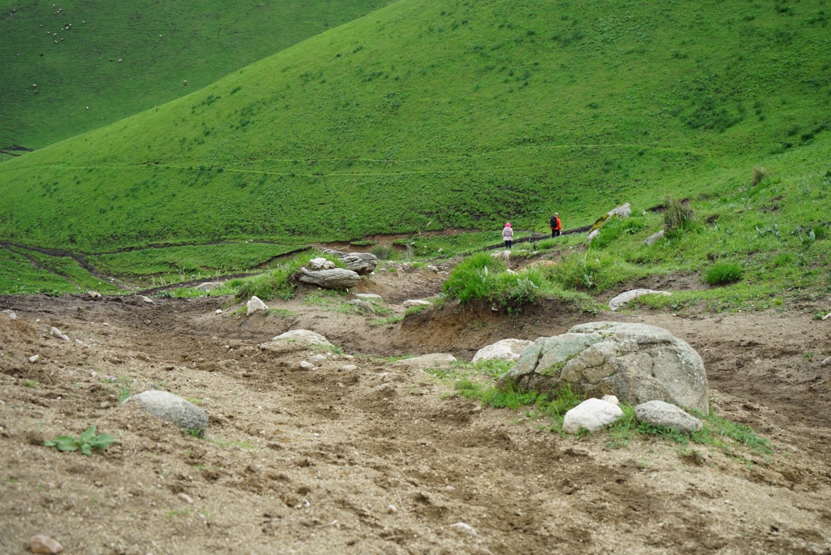 从一开始的兴奋,到中间的无助,翻过了一座山头,又到另一座山头,走过峭壁,淌过河谷,却仍然看不到尽头。虽然停下来休息了两次,但感觉屁股已经不是自己的了,风呼呼刮着,肚子咕咕叫着,原本以为三个半小时到达喀拉峻,正好和大部队汇合吃午餐,但三个半小时过后,仍然在山的那边,饿到没有力气,渴到无法说话。