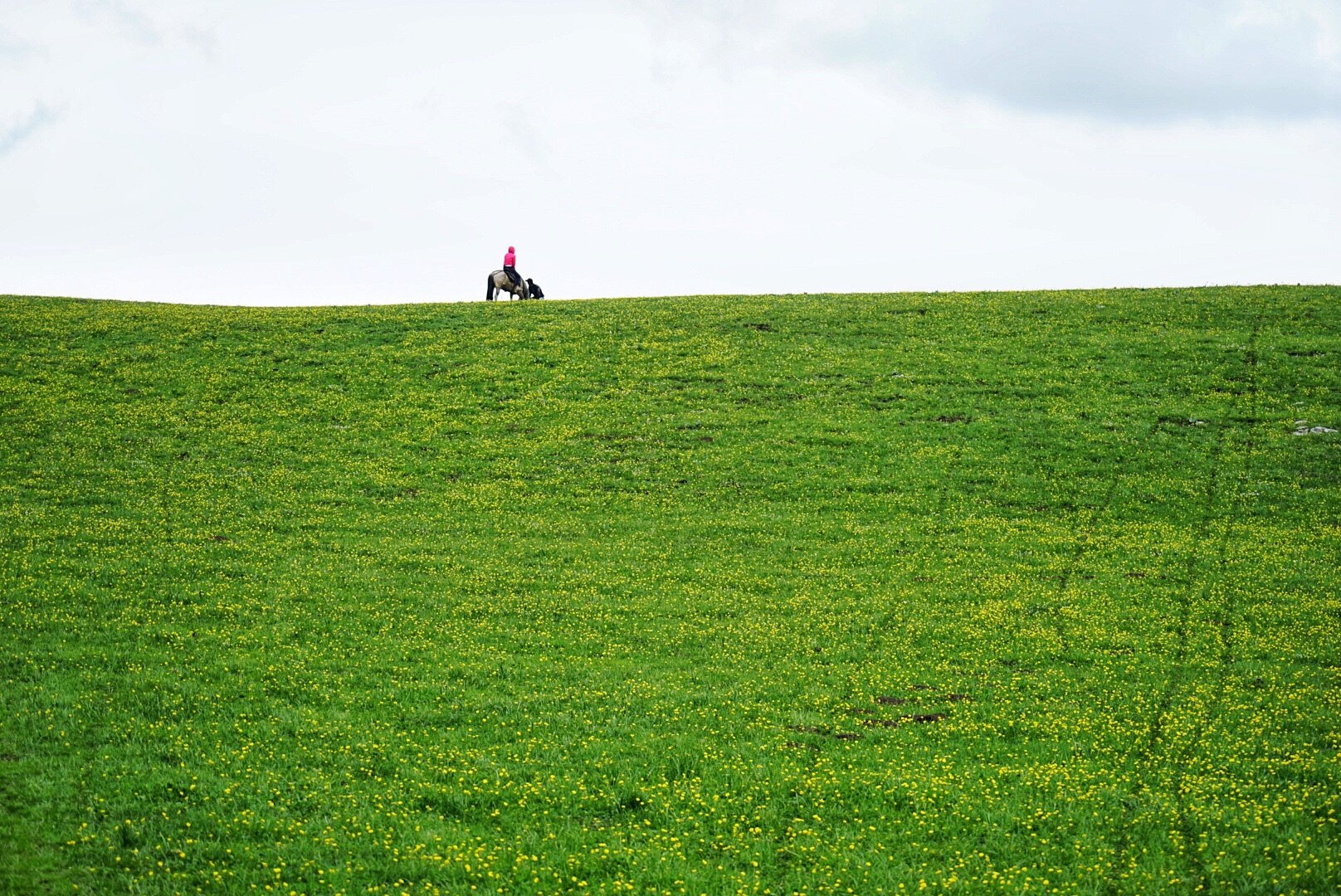 最终,我俩从早上九点,骑到了下午三点,全程六个小时!没吃没喝,吹着冷风,跋山涉水,一路悬崖峭壁,手机没信号,马也罢工。虽然过程艰辛,但我们也看到了全程最美的风景,左边是悬崖峭壁,右边是马羊成群,回头是雪山草原,前方是鲜花满地。骑马穿越时遇到了一位独行汉子,一路和我们说的最多的话就是“太美了,怎么那么美”,这汉子胆儿还特小,不敢骑下坡路,恐高的我在马背上哐当哐当下行时,看见下马小心翼翼走路的他,竟然仍不住笑了,那一刻,饿和累似乎不那么重要了,一切经历过程都是值得的。