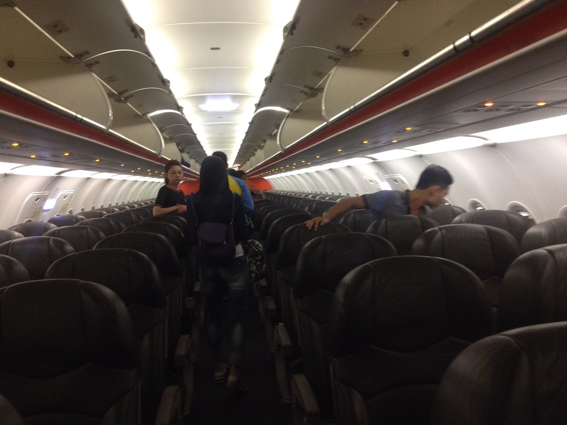 我们乘坐的是捷星太平洋航空,这是一家廉价航空公司,换了登机牌,安检过后,等在候机室里,几乎没有中国人,时间慢慢过去,完全没有要登机的信息,2点的航班,2点过才通知航班晚点,要等到3点过,疲惫的我们在候机大厅里昏昏欲睡,生怕航班取消,因为到达胡志明还要坐8点的飞机回国。3点过飞机终于来了,廉价航空就是简陋啊,机场里有些垃圾还没打扫,凳子上的皮有些已经破掉,而且空天吹出明显可见的冷气,必须穿上薄外套,不然要冷惨。