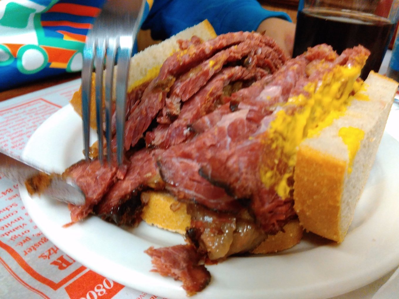 三明治中的熏牛肉分为瘦、肥和大肥三种不同口感的品种,品尝过后,感觉大肥更为鲜嫩,推荐各位看官以后就直接点大肥哦