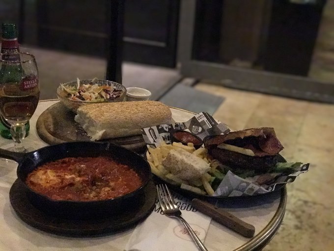 今天是安息日,海边除了少数几家餐厅关门,其它的都开着,我吃饭这家特意在门上贴着,我们不受犹太规矩约束。好像又点多了,等不到明天早餐了,点了番茄炖蛋和汉堡,那个汉堡真的很好吃。