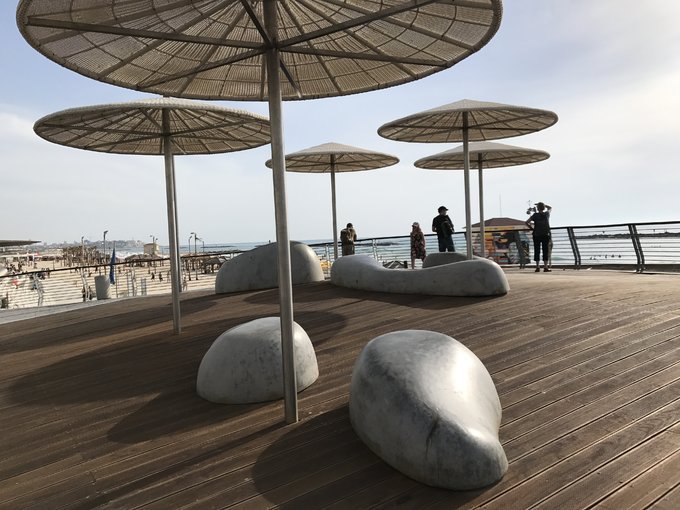 还了车,心情一下子就轻松起来,吃货的我决定先去卡梅尔市场转转。冒着烈日沿着海边走。