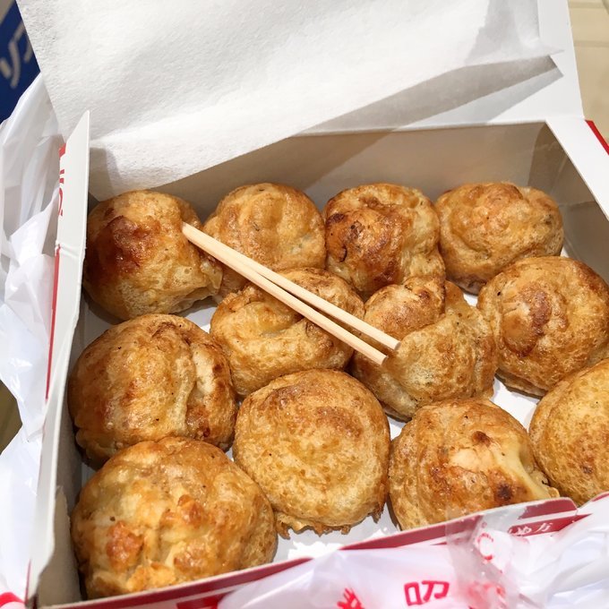 咬开吃了一下口感,里面是稀呼的口感,不是现代章鱼烧的那种实。再一次为幸运欢呼