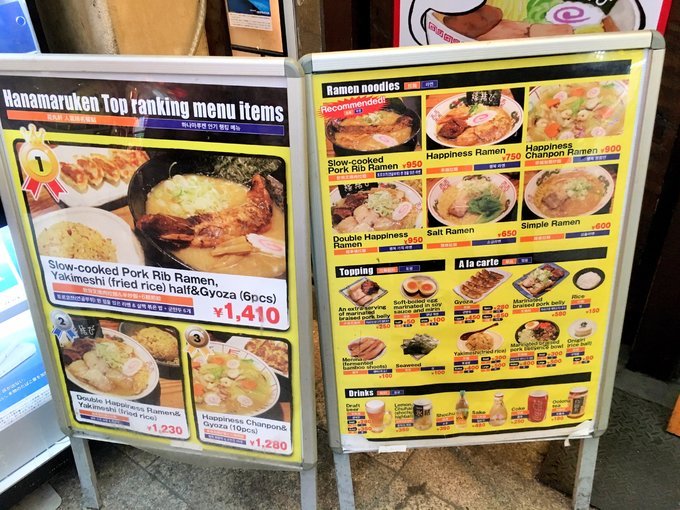 店门前的海报,日本当地人强推的拉面店,因为开在了心斋桥,海外人气拼不过四周围的金龙、一兰、神座等。刚开始来这里的海外游客都是通过在日本的朋友推荐才过来品尝,后来逐渐的有了些名气。店内拉面NO.1是猪软骨拉面和幸福拉面。可以单独点拉面,也可以点旁边的人气套餐,不仅仅含拉面,还有一份煎饺和半份炒饭。这家店24小时营业哦~~而且每人赠送一枚糖心蛋哦~