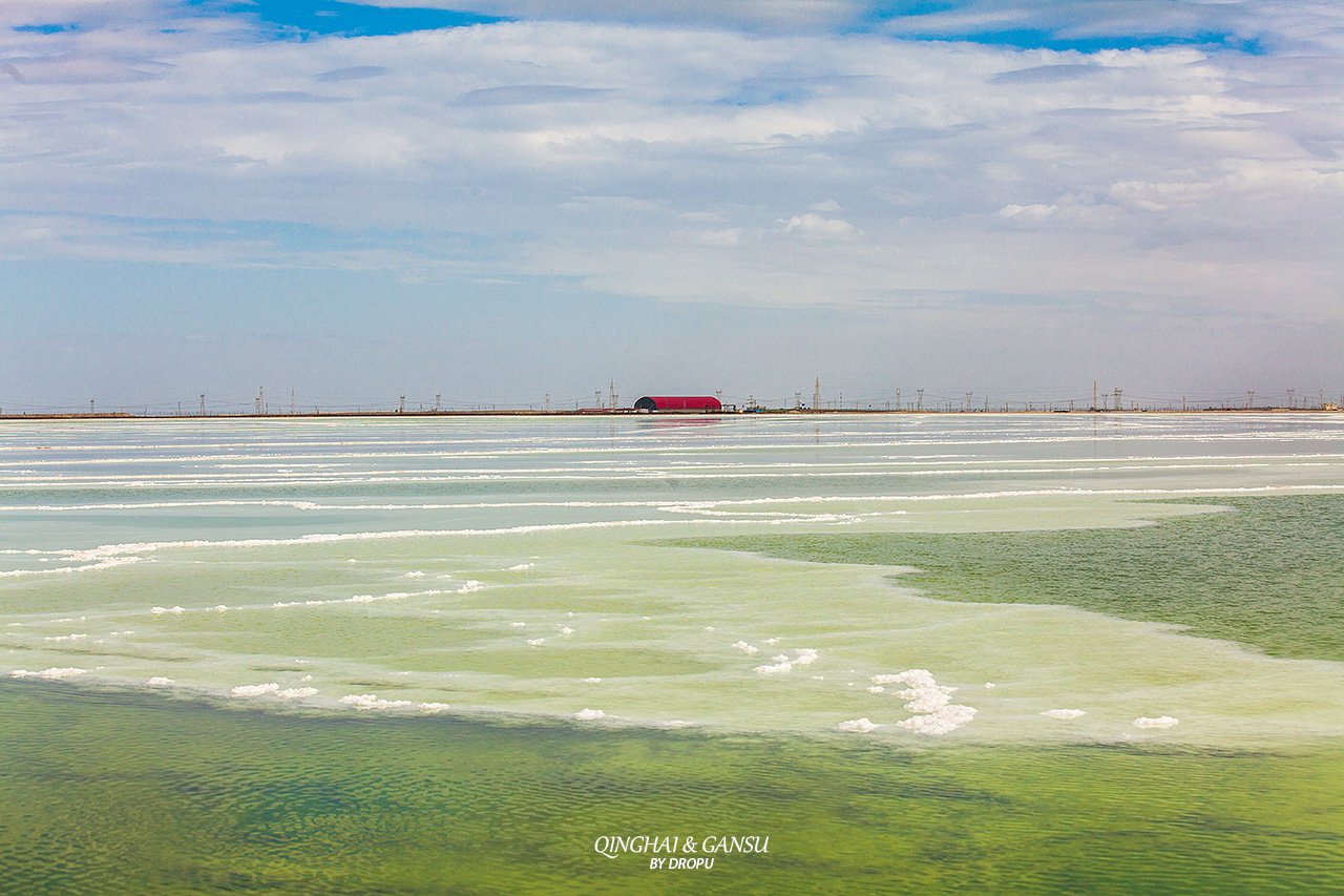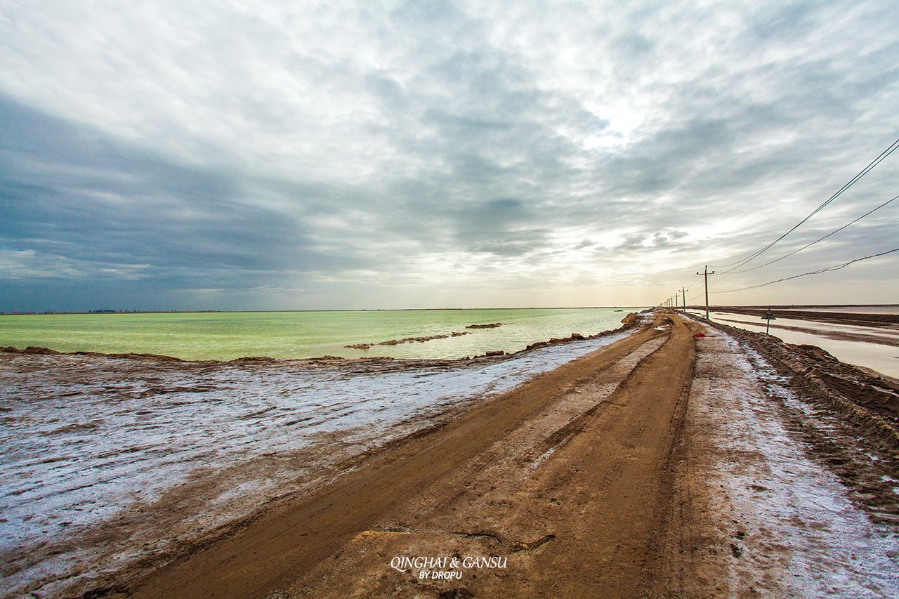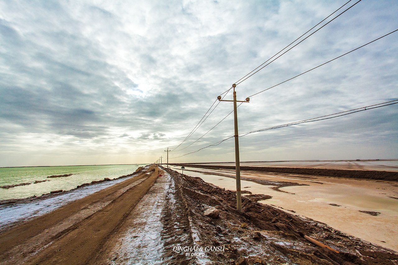 令人难以置信的是盐湖上还有一条长32公里的公路和铁路穿行而过,是一座浮在卤水上的“万丈盐桥”,公路和铁路是格尔木至敦煌公路的一段和青藏铁路的一段。