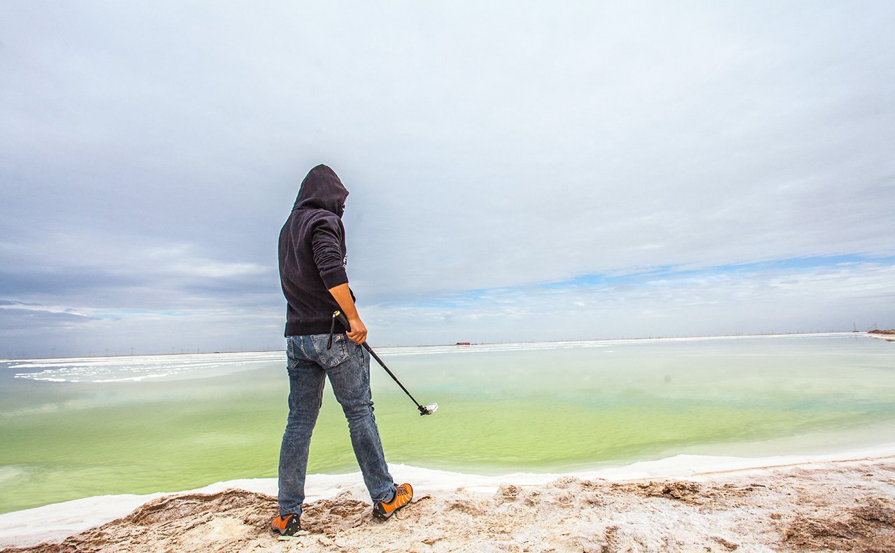 进去大概5公里的地方,看到了一片盐湖,结果我们在此地浪了太多时间,到后来天慢慢阴暗下来也不太敢往里开了,怕到时候出不来。回到大门处,看门的老大爷还问我们有没有到那个码头,还以为你们从那边出去了呢。这才知道,原来可以不原路返回,早知道就一路扎到底了