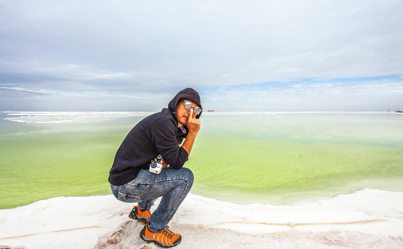 车开到盐湖边上,当然是各种浪了,除了哦们四人,偌大的湖面连只鸟都木有。。。。