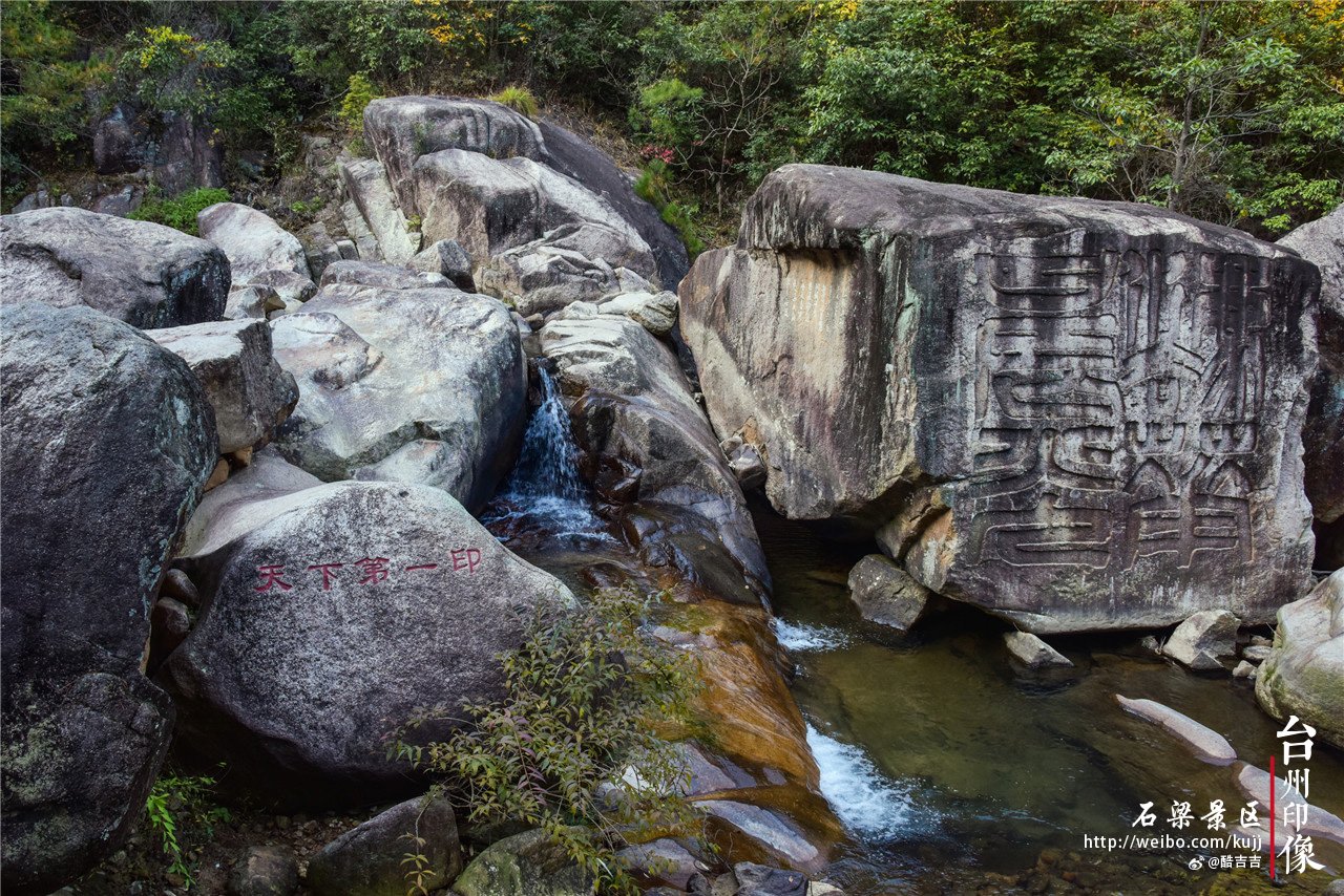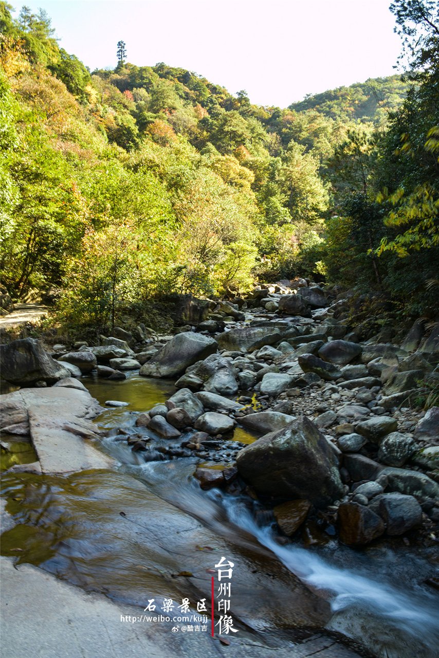 从天台山石梁景区入口进来,就可以看到山谷之间的溪流,山涧怪石遍布,溪水清澈见底,延绵不绝。