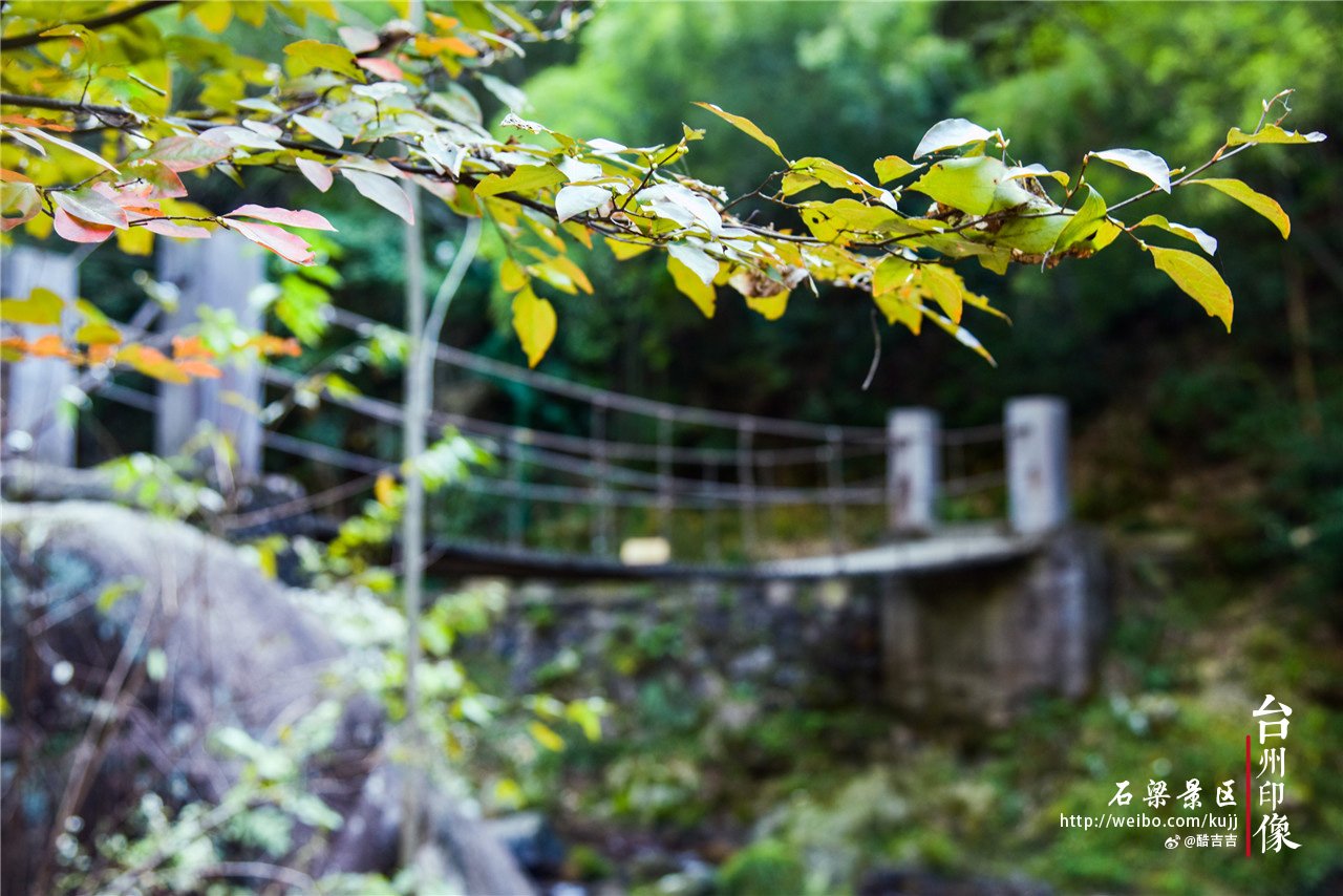 山中风景秀丽,令人赏心悦目,心旷神怡,每走十步,就忍不住停下来按快门。爬到石梁桥上近距离观看瀑布