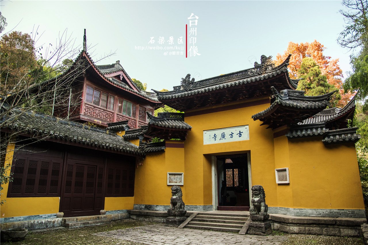 石梁飞瀑旁的古方广寺