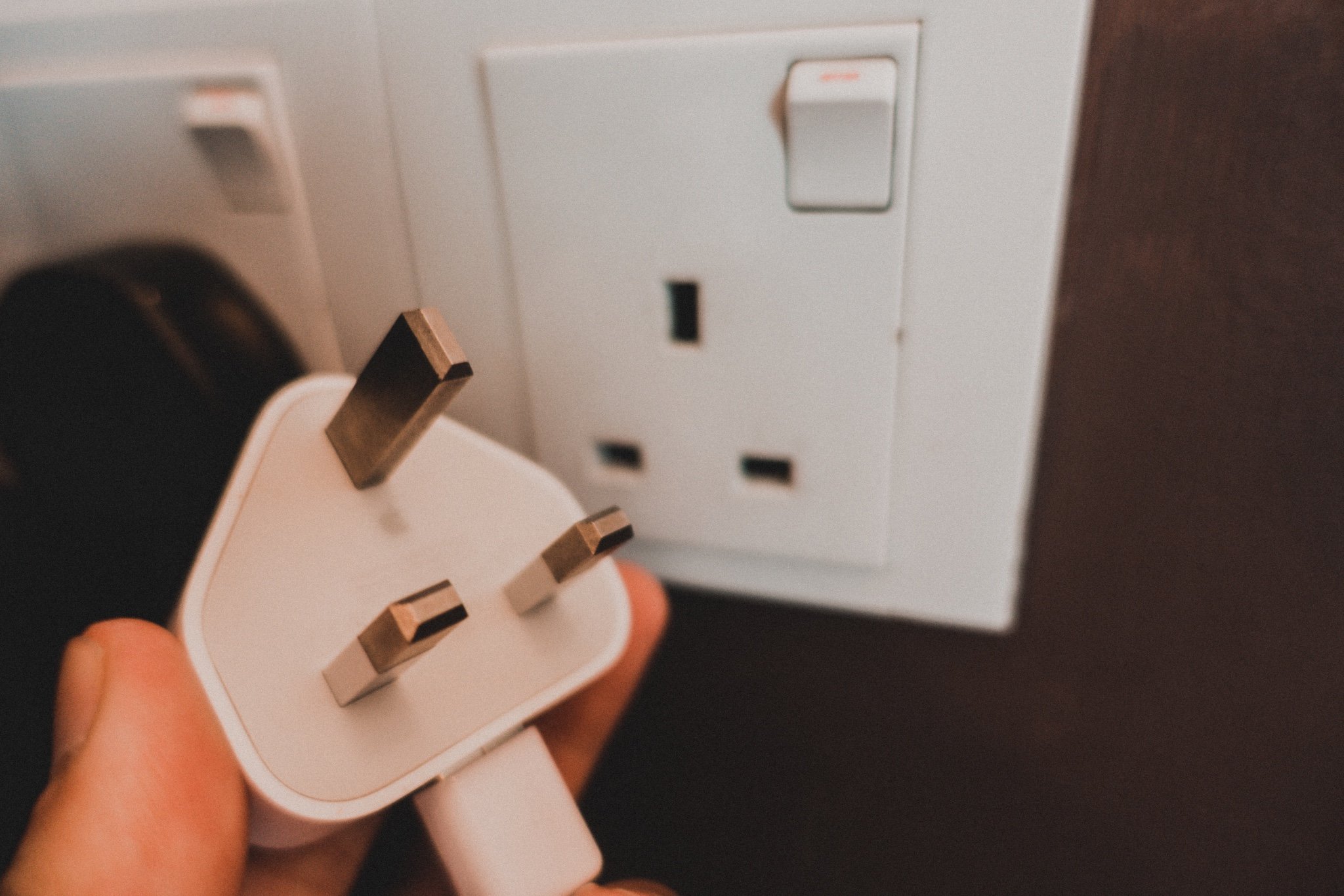 酒店用的是英式插头,我们没有带转换插座,因为很多港版的设备配的都是一样的插头