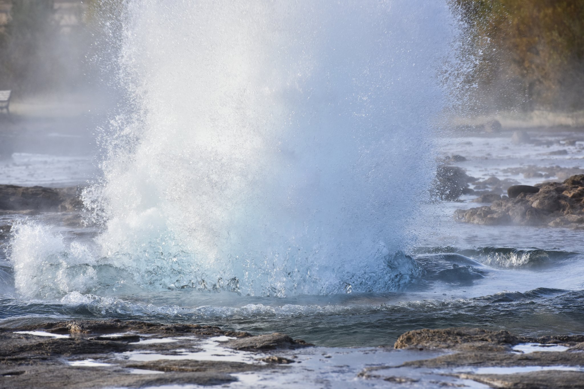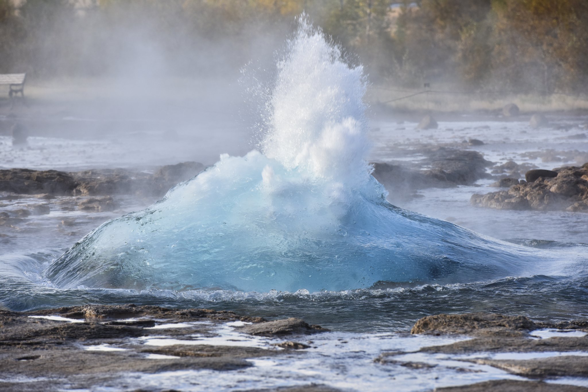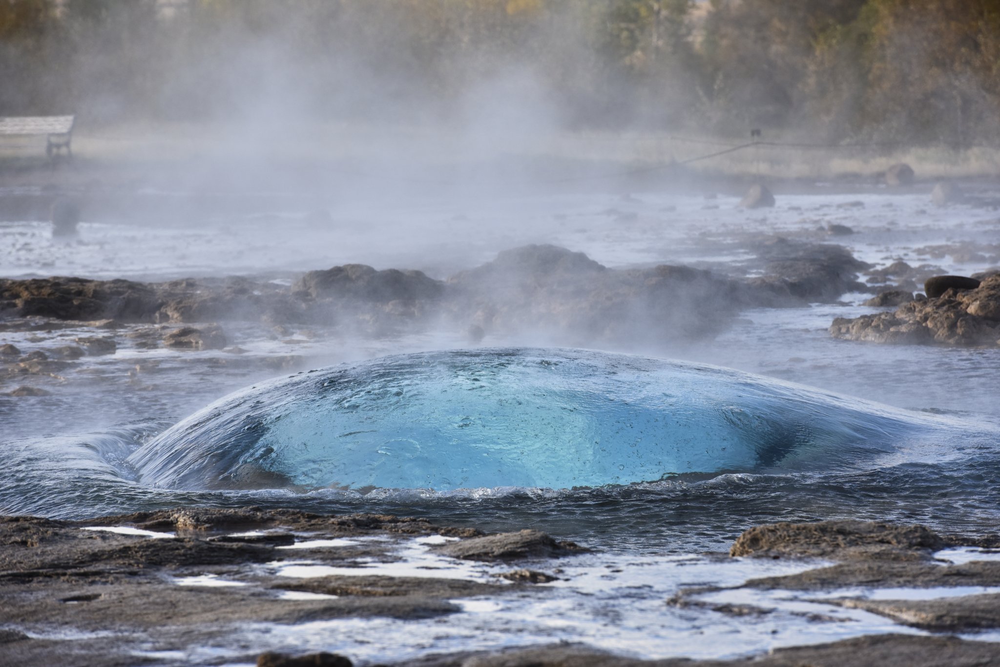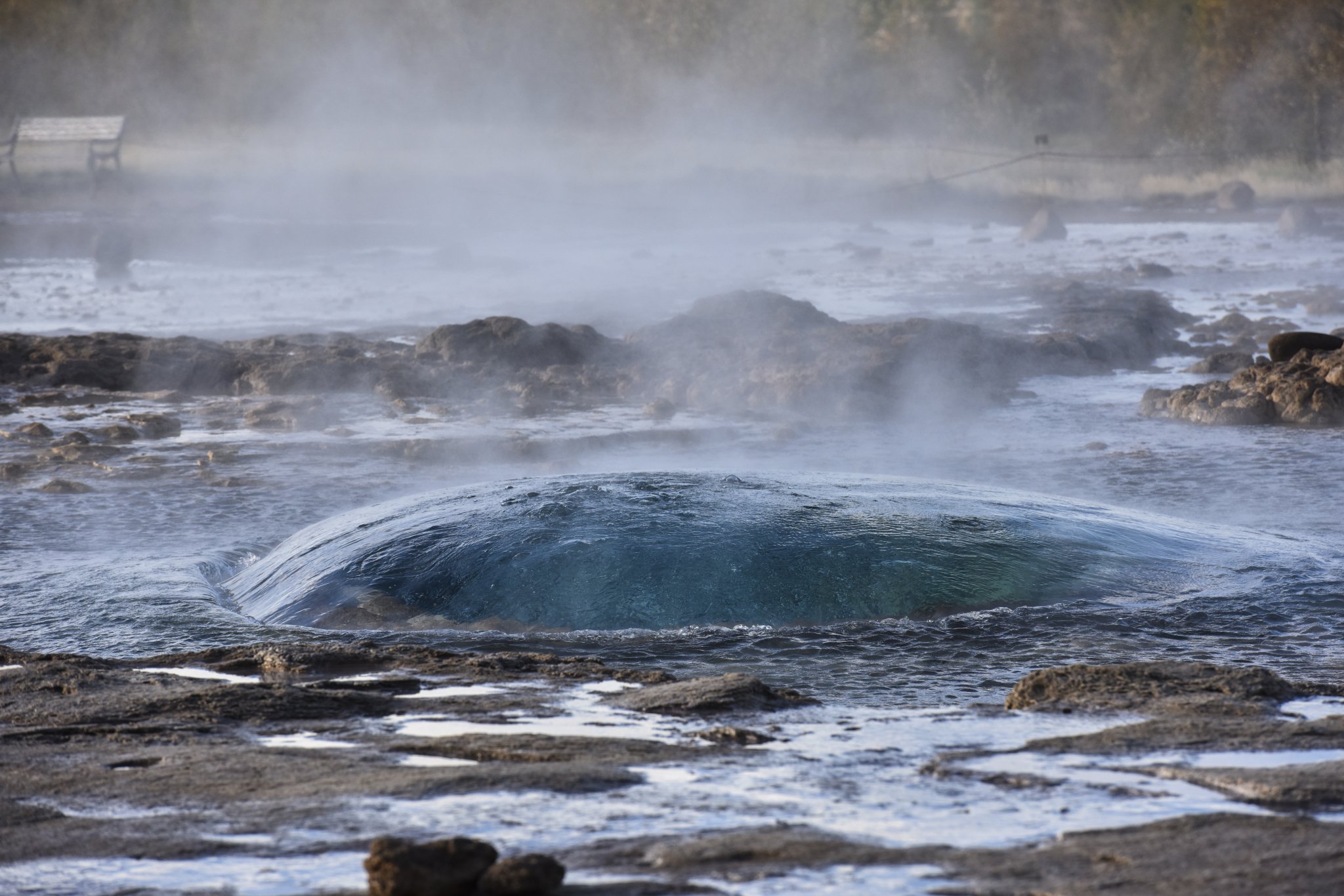 间歇泉,每隔几分钟喷发一次,时间不太固定。最大的间歇泉因为地震以及不再喷发了,现在我们看到的是第二大的。在最大的间歇泉我们几个傻等了好久,实在等不及了才来看这个小的,后来一谷歌,那个最大的已经没了,没了~~所以出行前了解当地的一些人文地理知识是很重要的,我们这下浪费表情浪费时间,都是吃了没文化的亏!