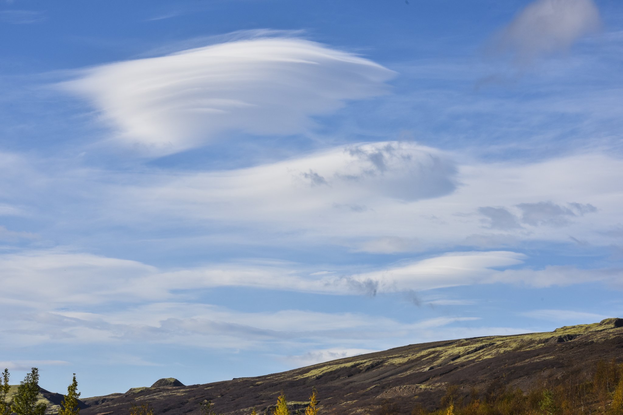 而且当一串荚状云出现的时候,每一个云层都会爬上之前云层的顶部,这样就会产生一种著名的景观“波状云”