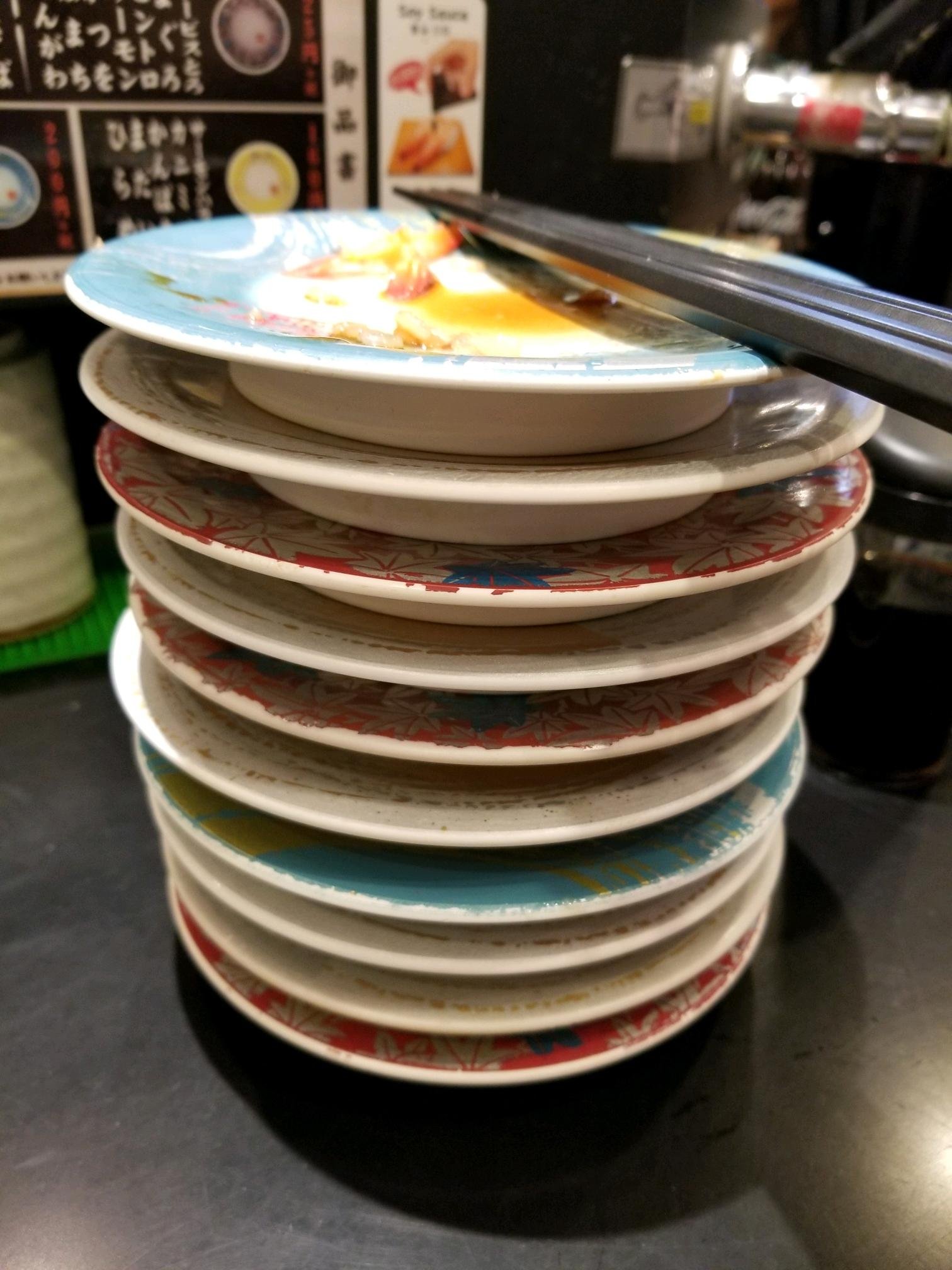 一共消灭掉十盘,应该有七八分饱,还是要控制下自己不能长胖太多哈哈🍤🍥带着满足感回窝儿休息,明天开始逛街采购啦!Good night 👼👼
