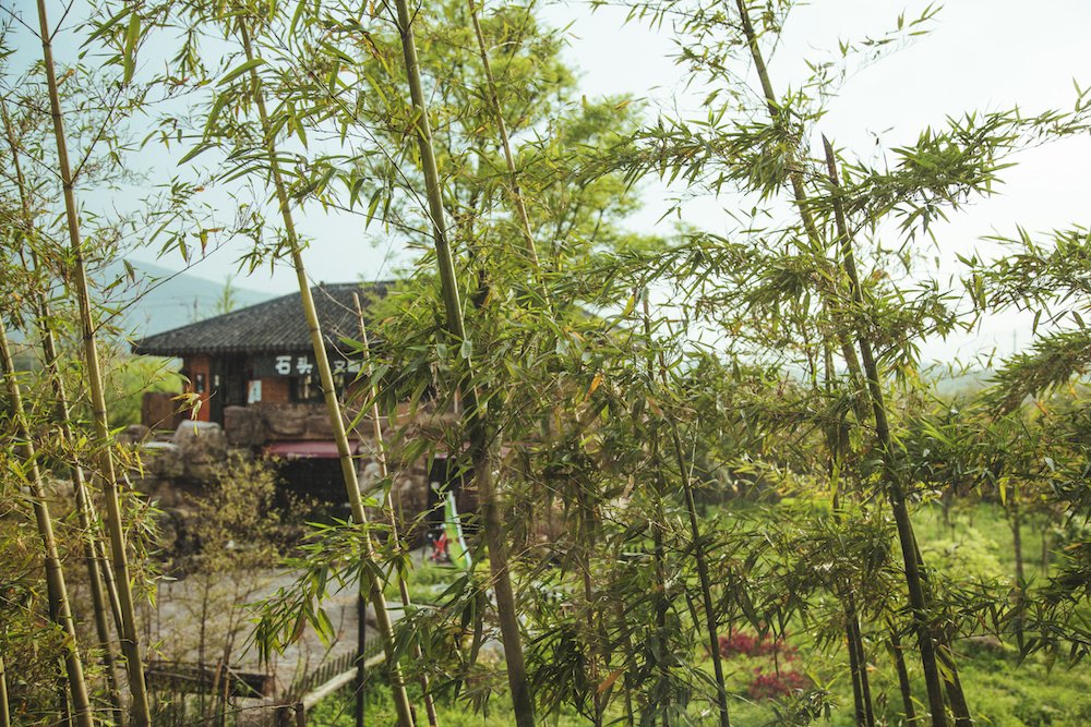 是一个特色旅游村,里面有几十家各具特色的民宿,其实这样不是重点,重点是出门后就看见绿油油的竹林...