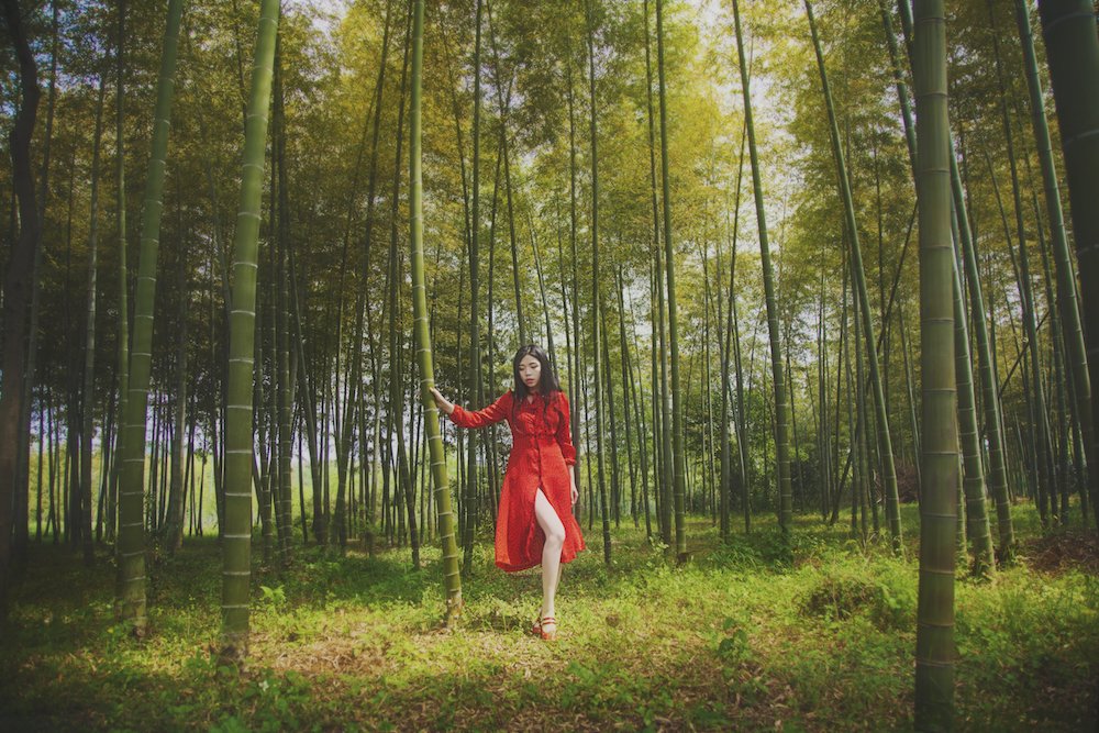 赶紧在竹林里拍上吧!我从小就非常喜欢竹子,一束一束的光打下来,有种很神秘的感觉。