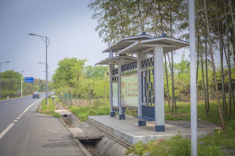 马路边有巴士站,就是之前说的宜兴旅游专线巴士,在酒店门口就有,如果有同学不是开车来的,可以坐旅游巴士到篱笆园站,就可以找到酒店了。