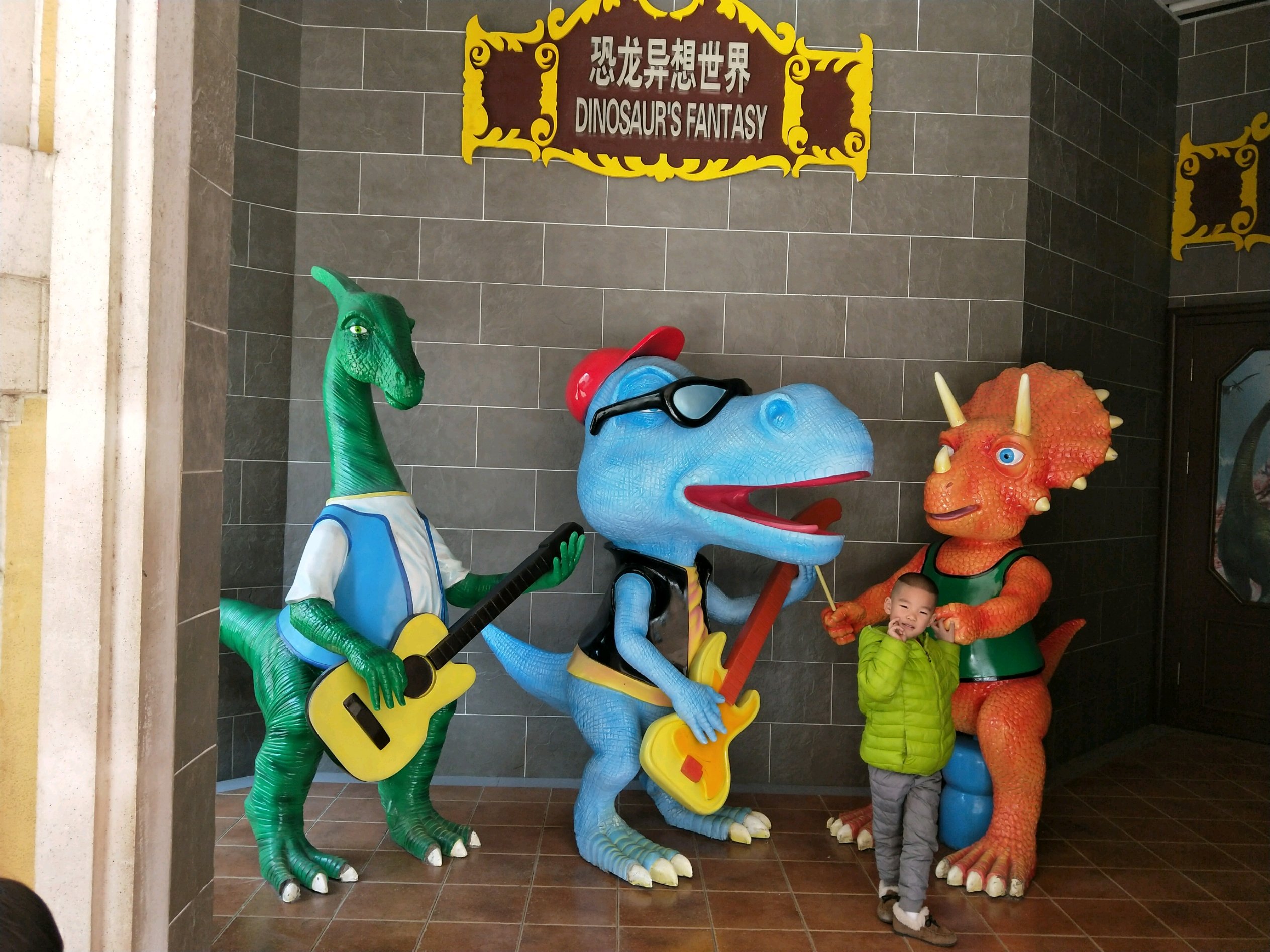 5号一早起来吃完饭退房直接去了常州,扬州到常州1.5小时车程。就是奔着中华恐龙园去的,离高速3公里,很近,我们中午11.30到,一直玩到16点才出来,各种冻成🐶但是孩子们很开心,门票成人230元,1.2米以下儿童免费,很多项目都要量身高过了1米才能玩,这次非常幸运的是果果差2厘米120cm,然然刚刚1米😂