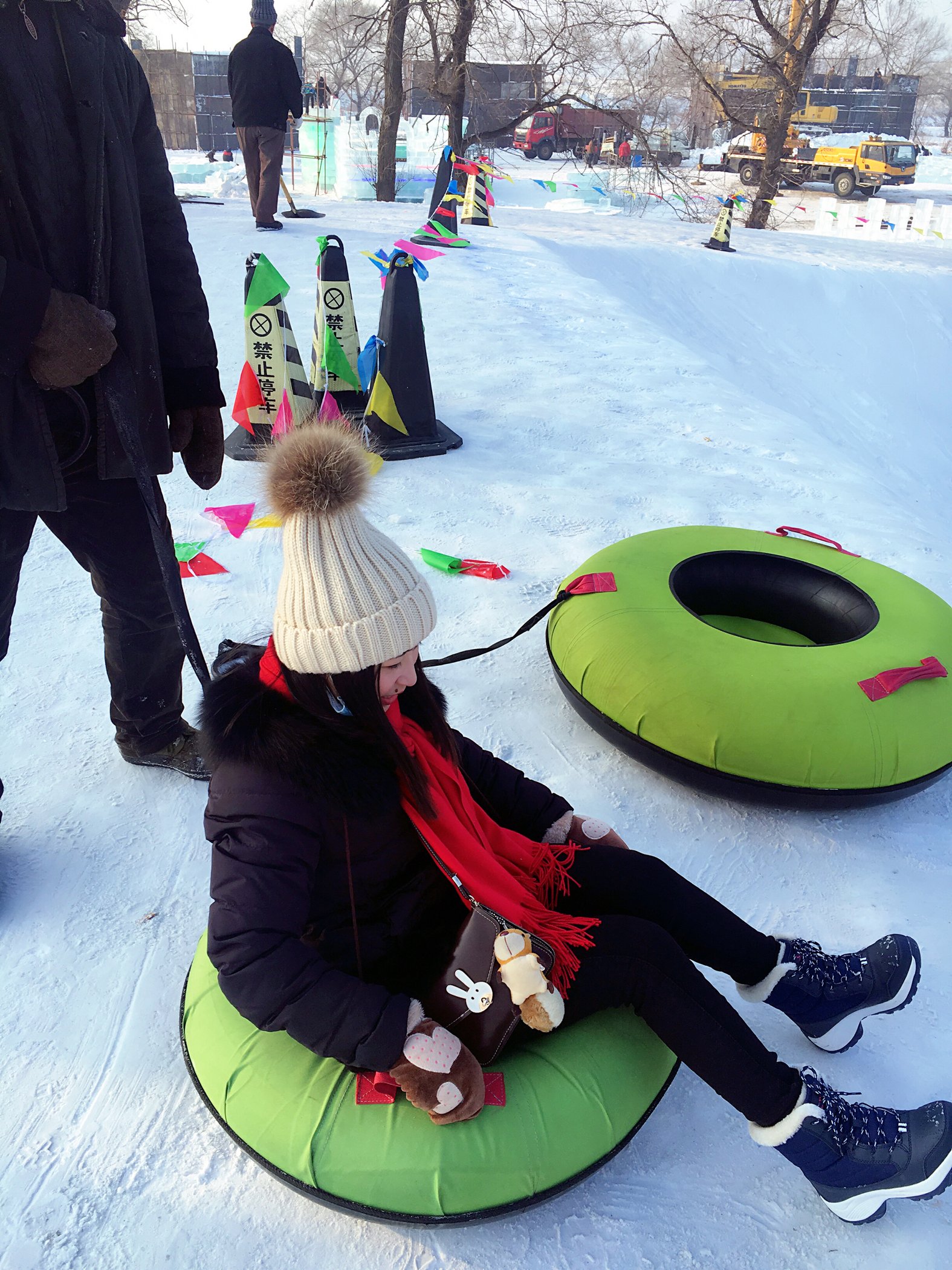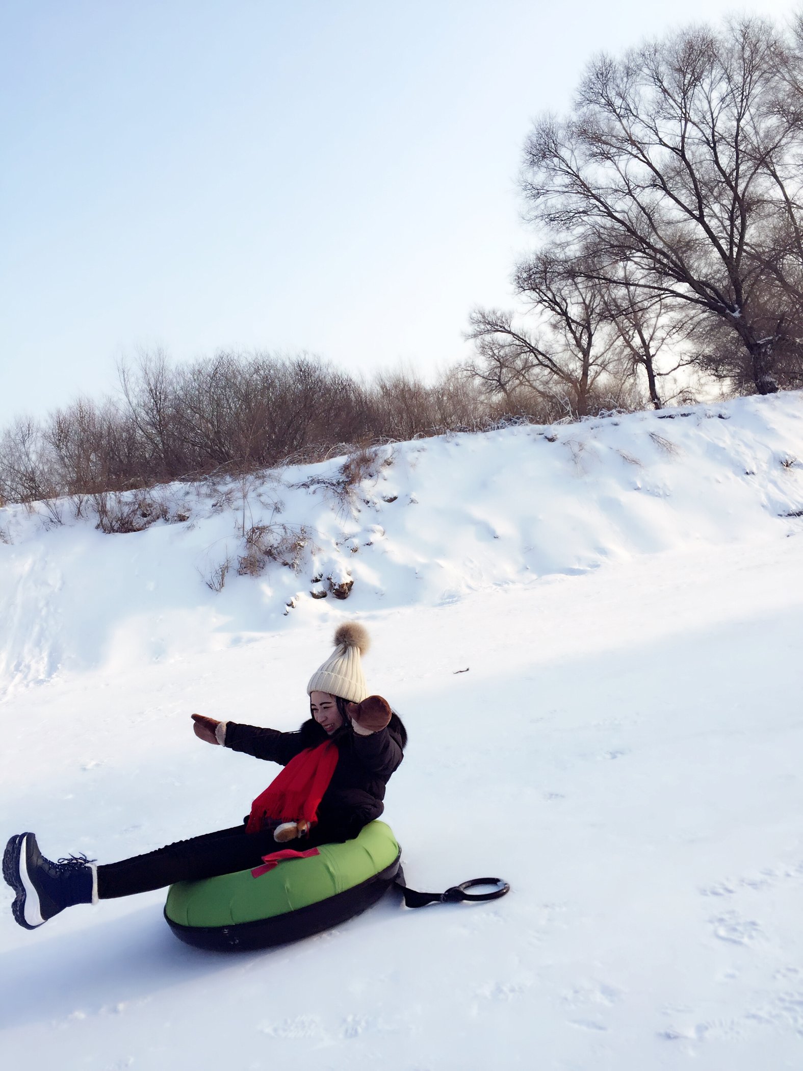 这个超好玩,叫雪圈,很高的坡度一下子冲下去,开始我不敢,玩了一次我上瘾了