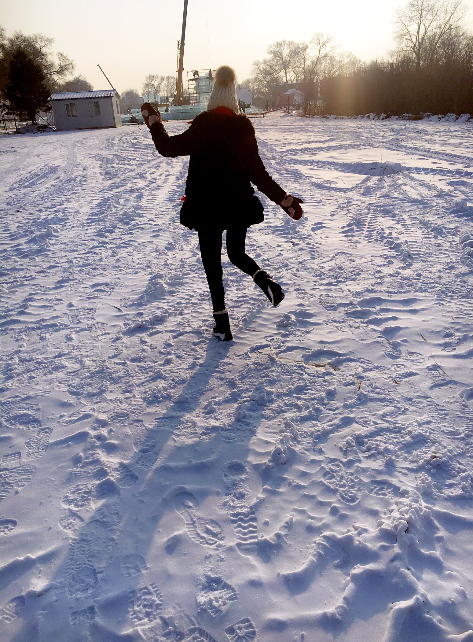 到雾凇岛后开始看到大片大片的雪,而且是积雪,整个人睡下去就是咯吱咯吱的声音,已经开心到手舞足蹈