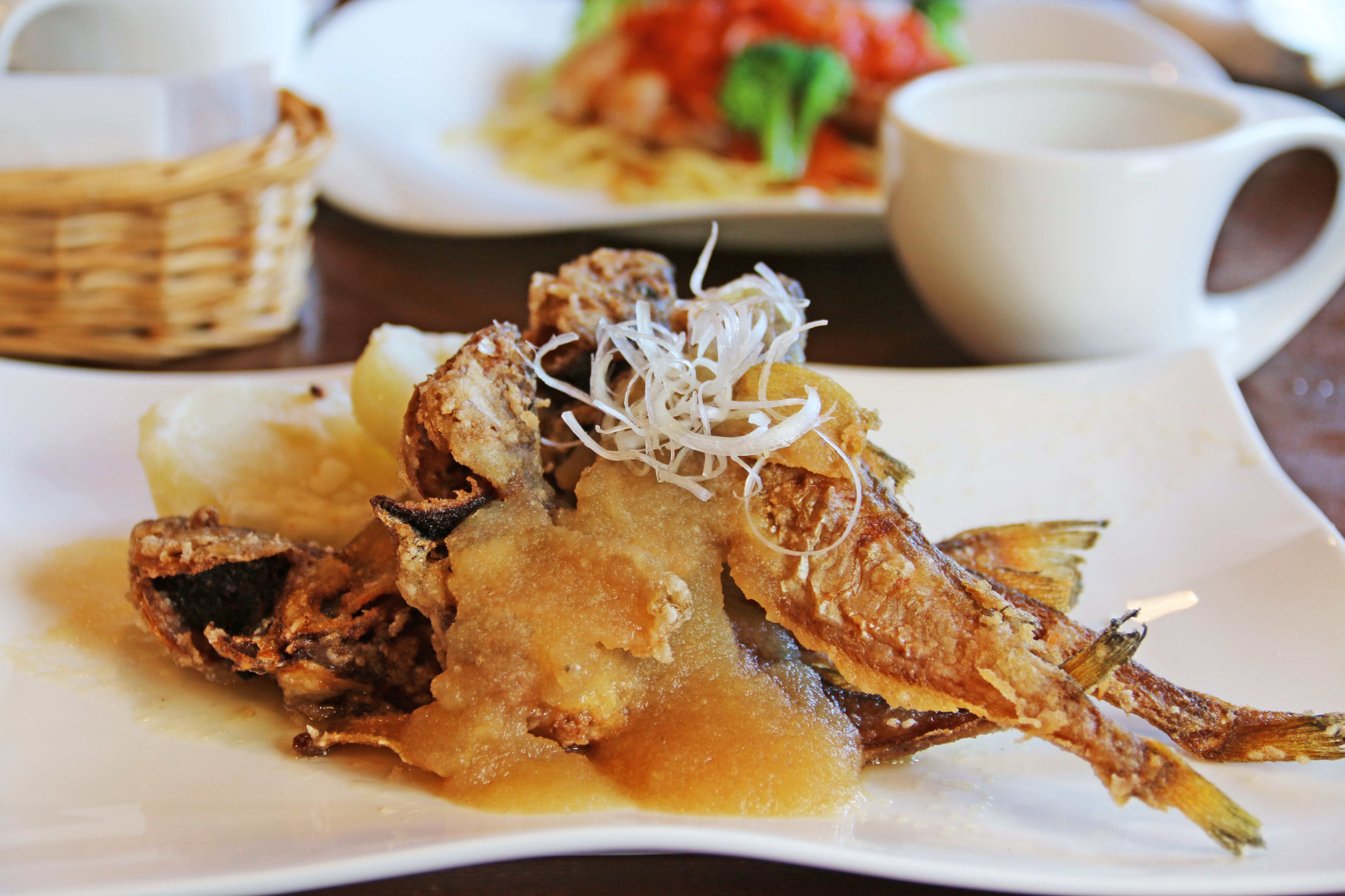 点了午餐鸡肉和鱼肉的套餐,每份820日元,味道还不错。